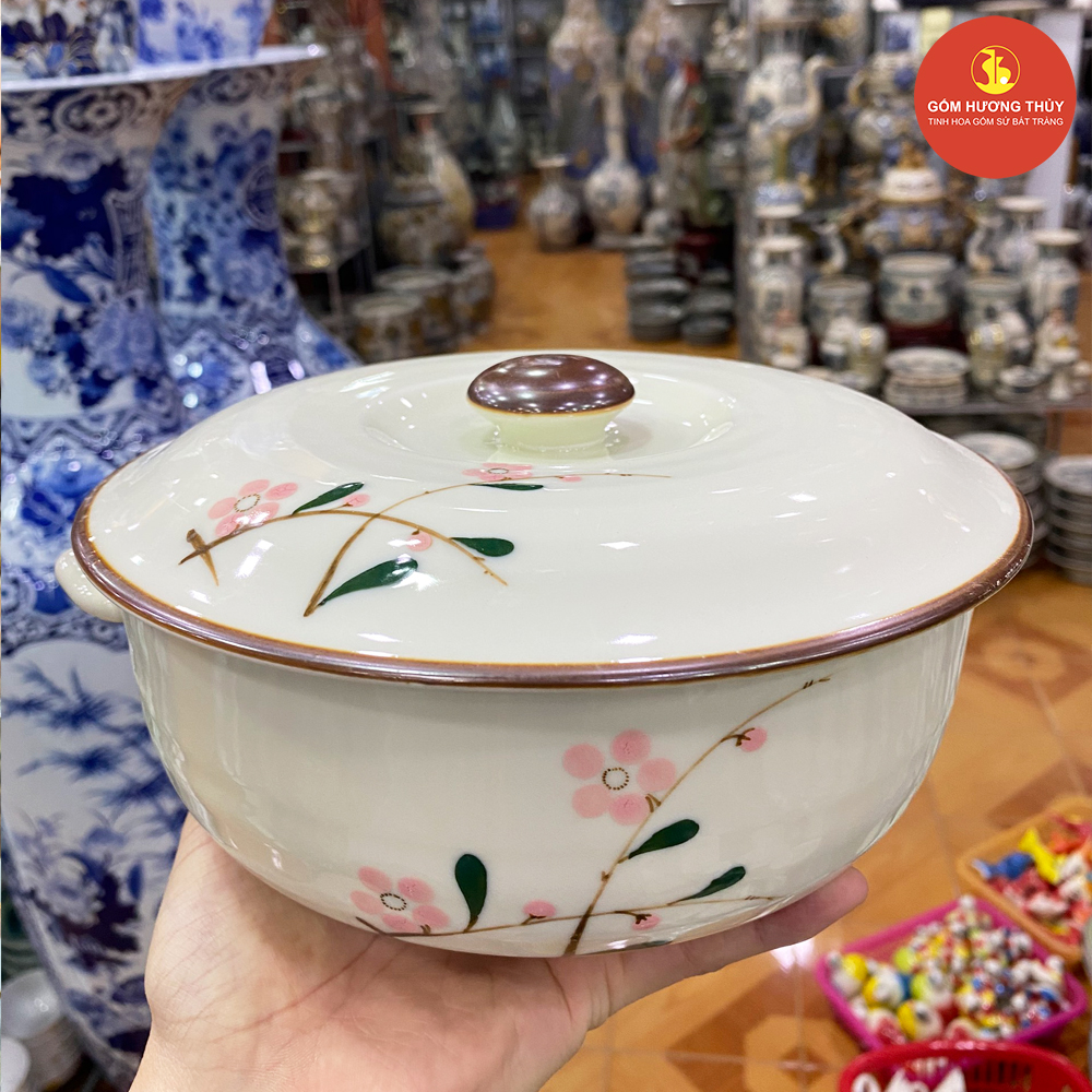 TÊN SẢN PHẨM: Âu cơm men kem vẽ đào hồng