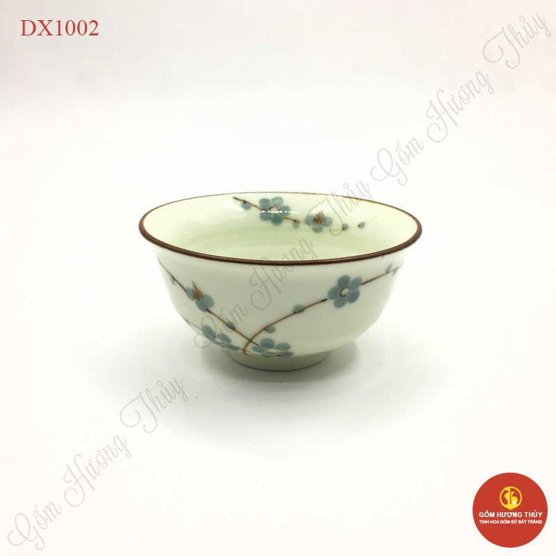 Bát cơm miệng loe men kem vẽ đào xanh