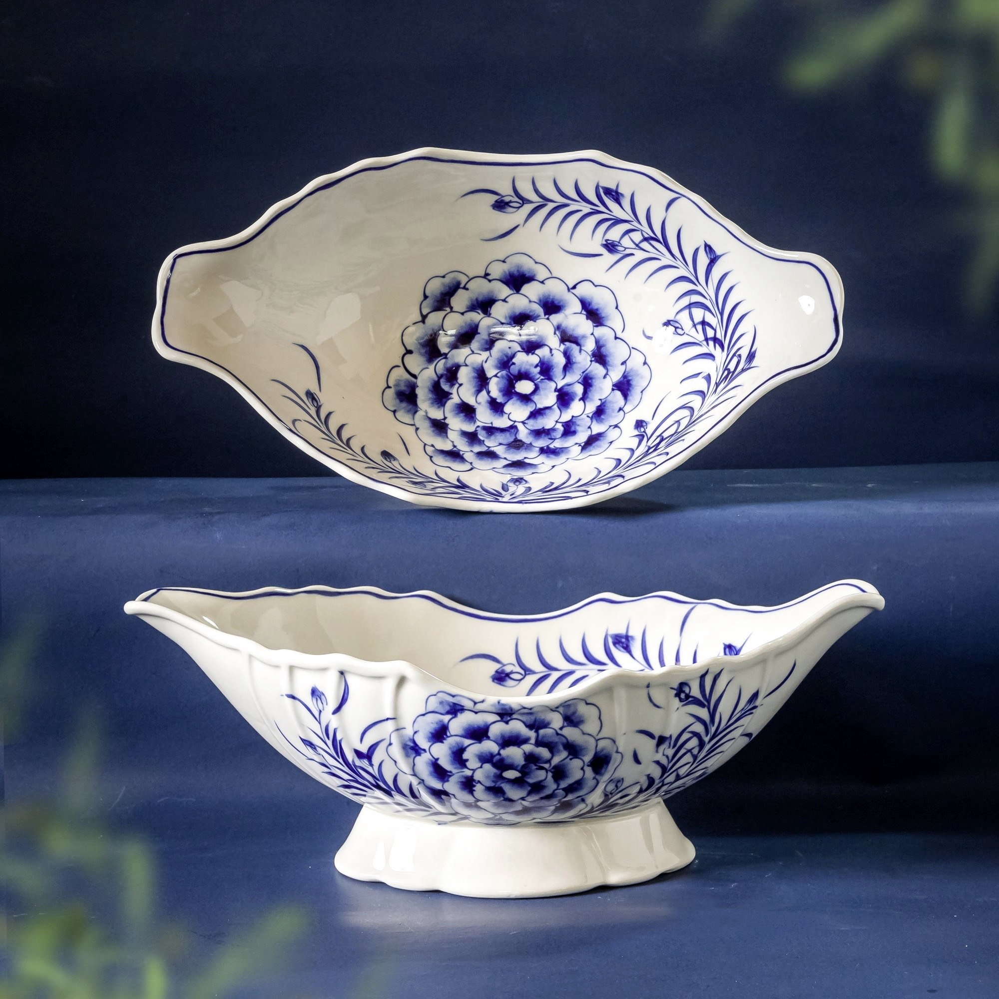 TÊN SẢN PHẨM: Bát gà men trắng vẽ hoa phù dung xanh
