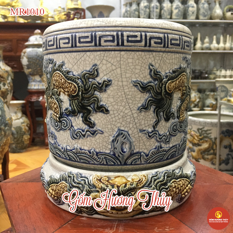 2. Bát hương men rạn đắp nổi
