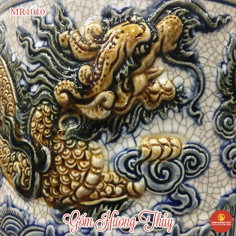 * Các hoa văn họa tiết như hình rồng, phượng, hoa, mây, sóng thủy ba,… được đắp nổi hoặc khắc chìm lên sản phẩm, các hoa văn này sẽ được sử dụng một loại men khác để vẽ lên, có thể là men ngọc, men nâu,… Sự kết hợp giữa các dòng men được người thợ Bát Tràng sử dụng nhuần nhuyễn và cho ra lò những sản phẩm đáp ứng nhu cầu cao của Khách hàng.