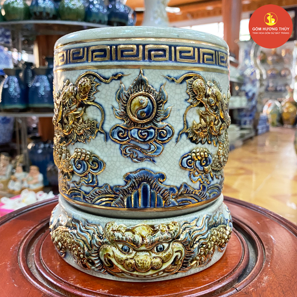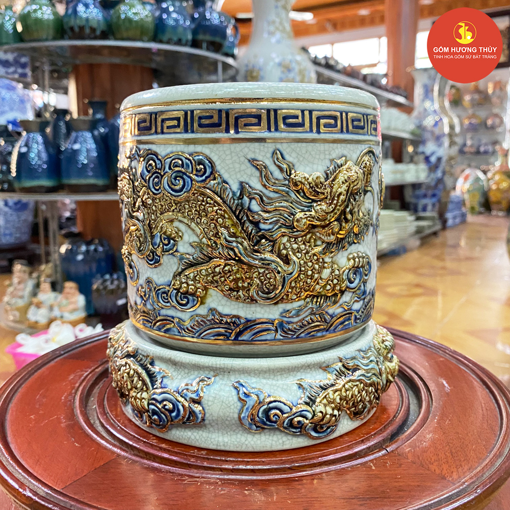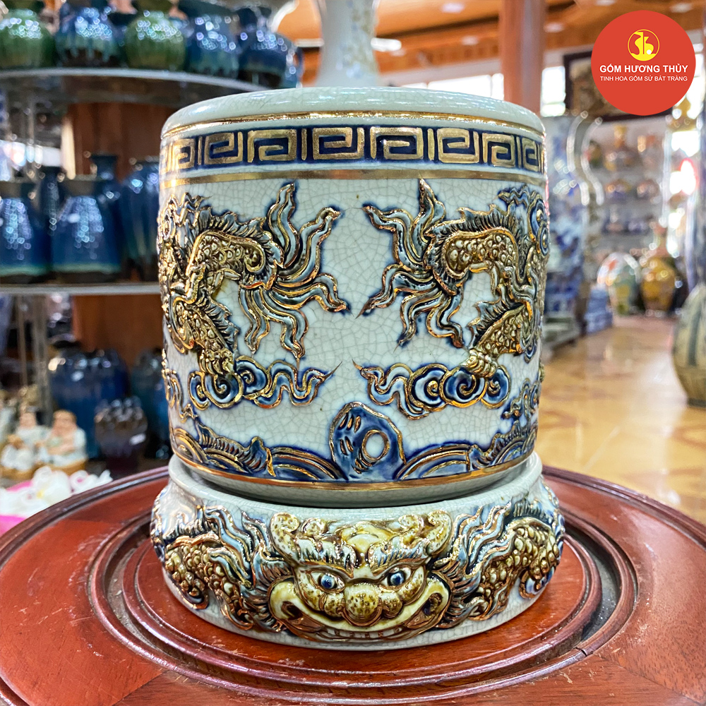 TÊN SẢN PHẨM: Bát hương phi 16 men rạn nổi Vẽ vàng kim