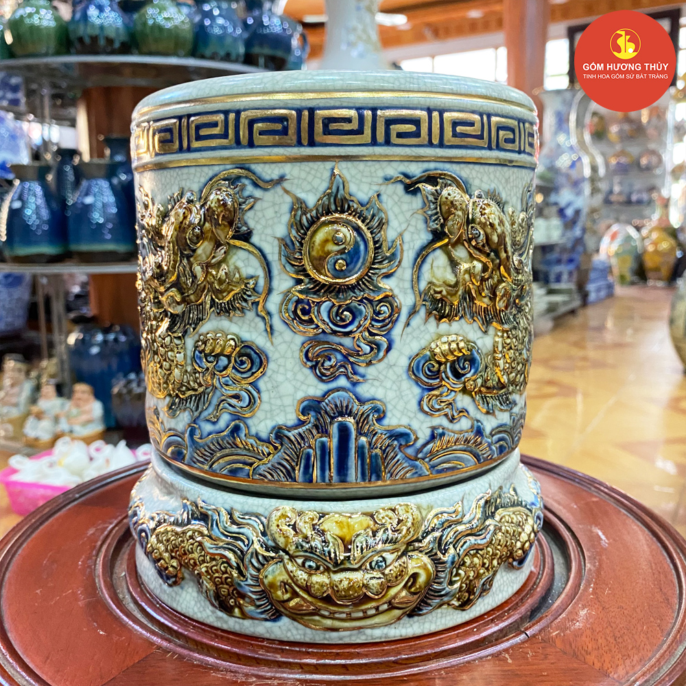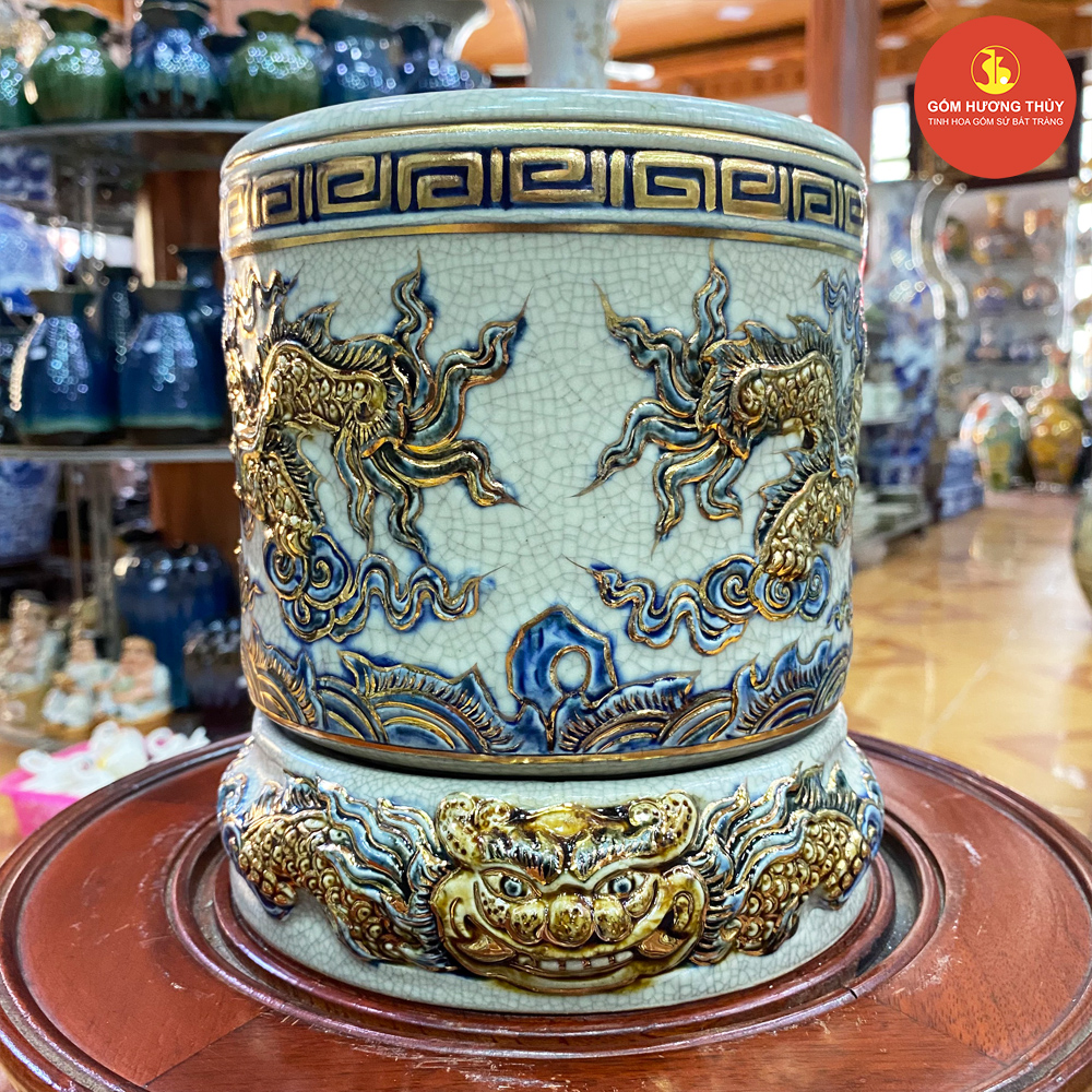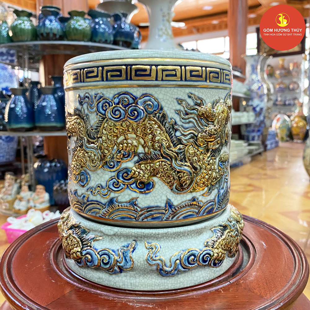 TÊN SẢN PHẨM: Bát hương phi 18 men rạn nổi Vẽ vàng kim