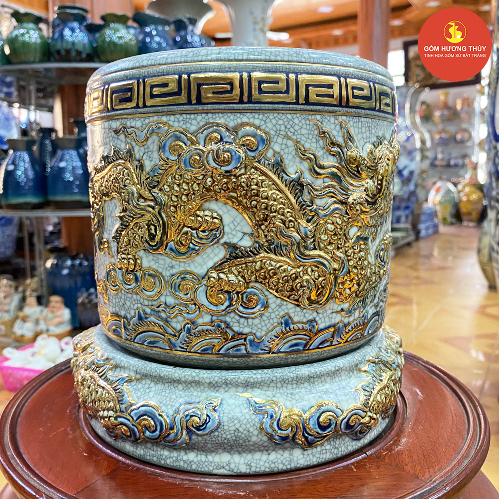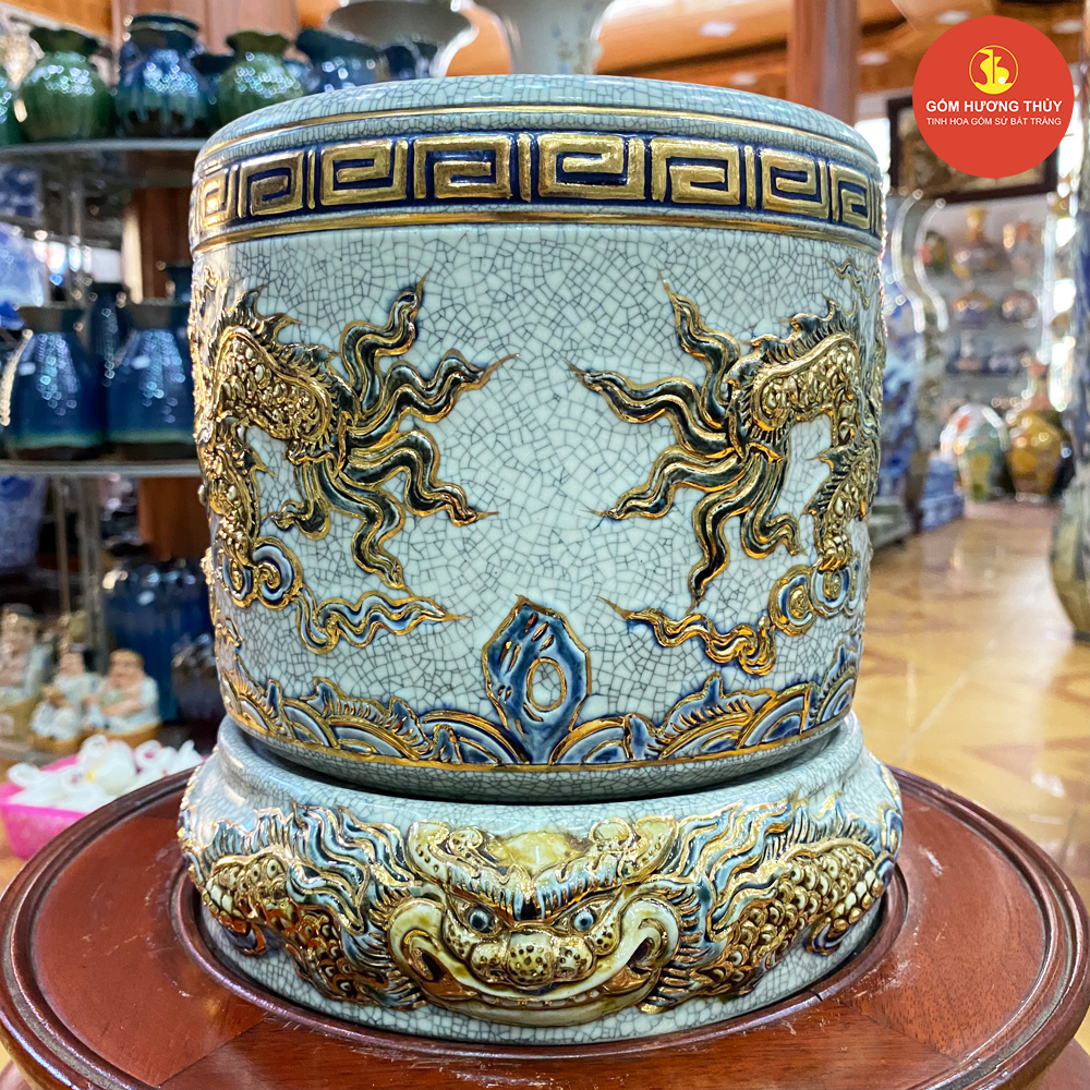 TÊN SẢN PHẨM: Bát hương phi 20 men rạn nổi Vẽ vàng kim