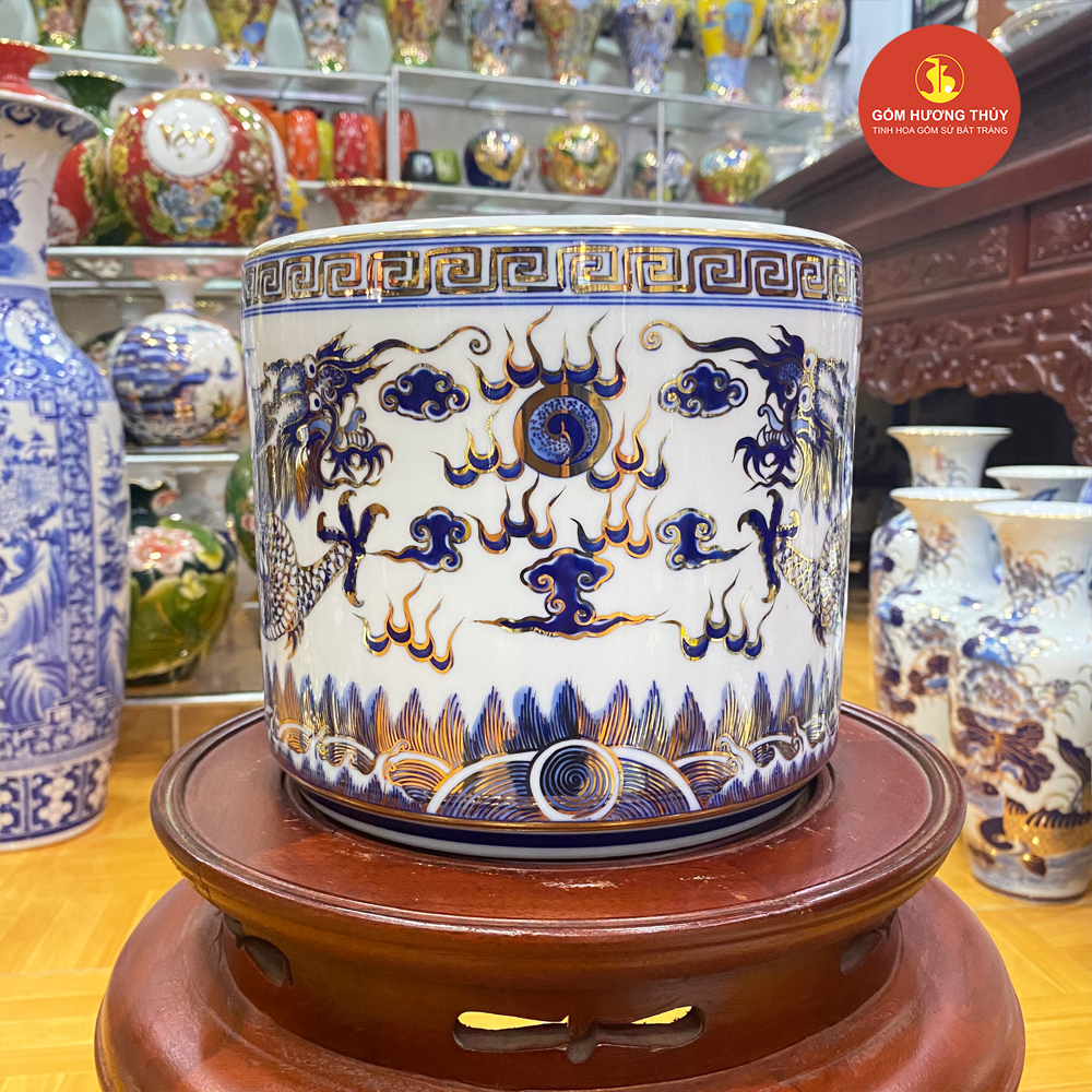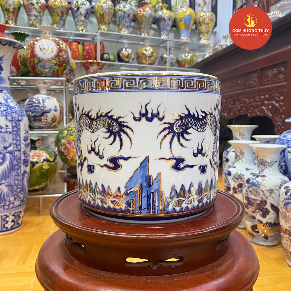 TÊN SẢN PHẨM: Bát hương phi 22 men dong vẽ vàng kim