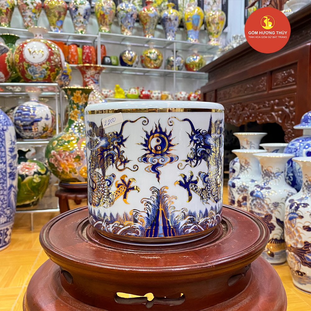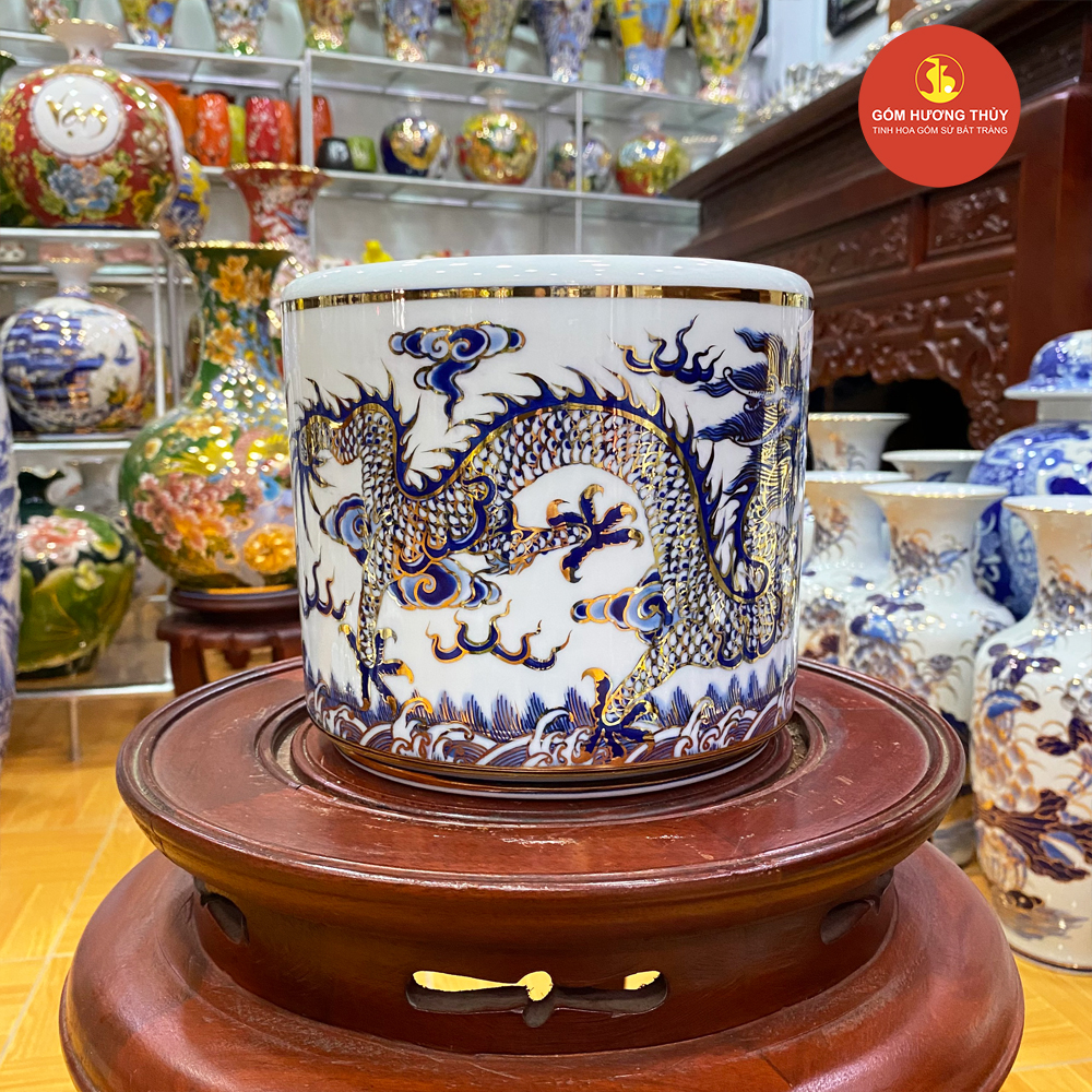 TÊN SẢN PHẨM: Bát hương vuốt phi 18 men dong vẽ vàng kim