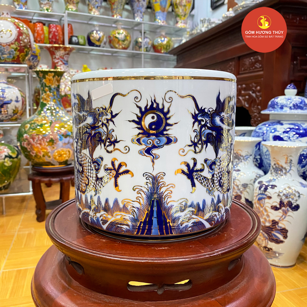 TÊN SẢN PHẨM: Bát hương vuốt phi 25 men dong vẽ vàng kim