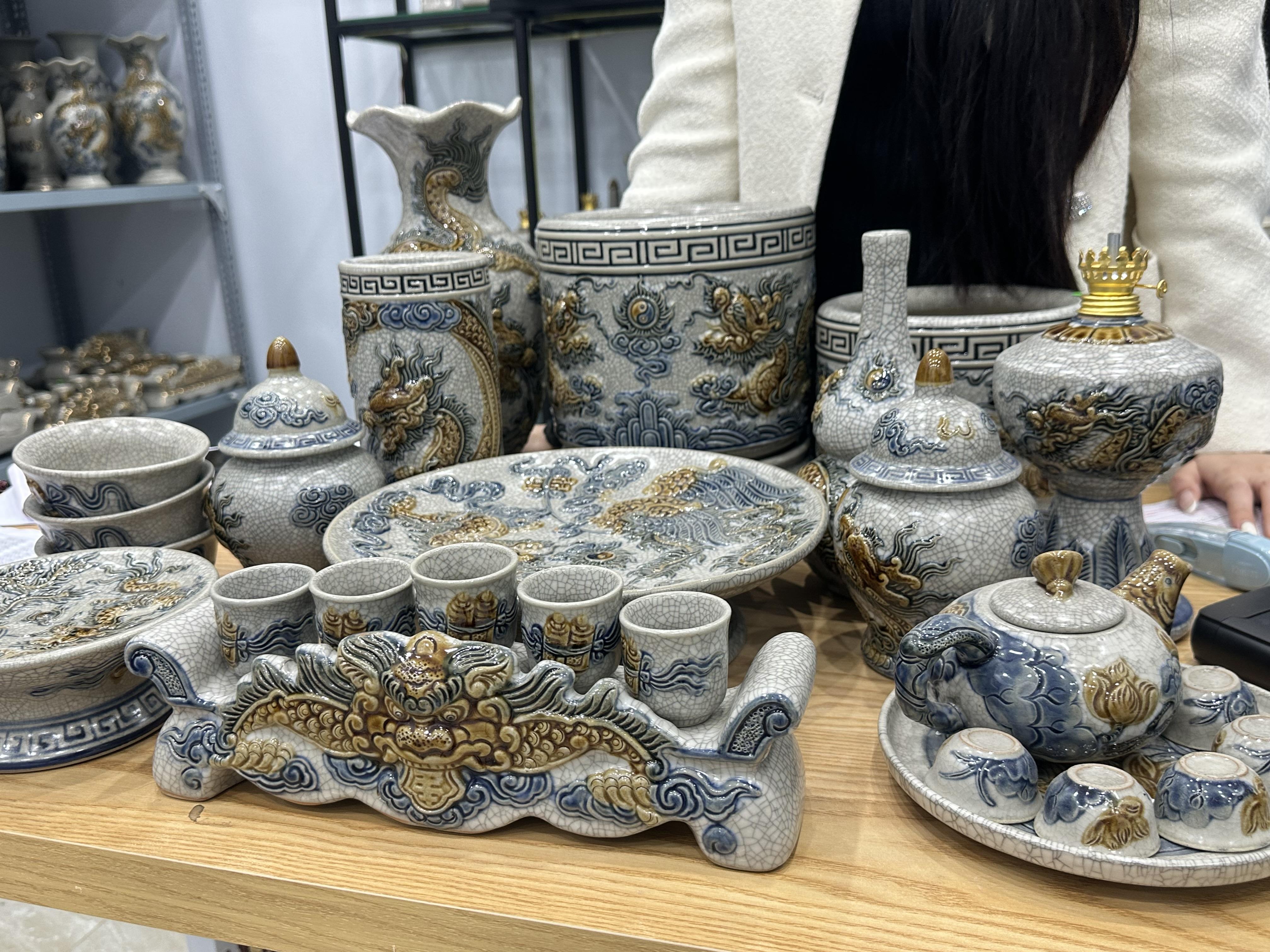 * Các hoa văn họa tiết như hình rồng, phượng, hoa, mây, sóng thủy ba,… được đắp nổi hoặc khắc chìm lên sản phẩm, các hoa văn này sẽ được sử dụng một loại men khác để vẽ lên, có thể là men ngọc, men nâu,… Sự kết hợp giữa các dòng men được người thợ Bát Tràng sử dụng nhuần nhuyễn và cho ra lò những sản phẩm đáp ứng nhu cầu cao của Khách hàng.
