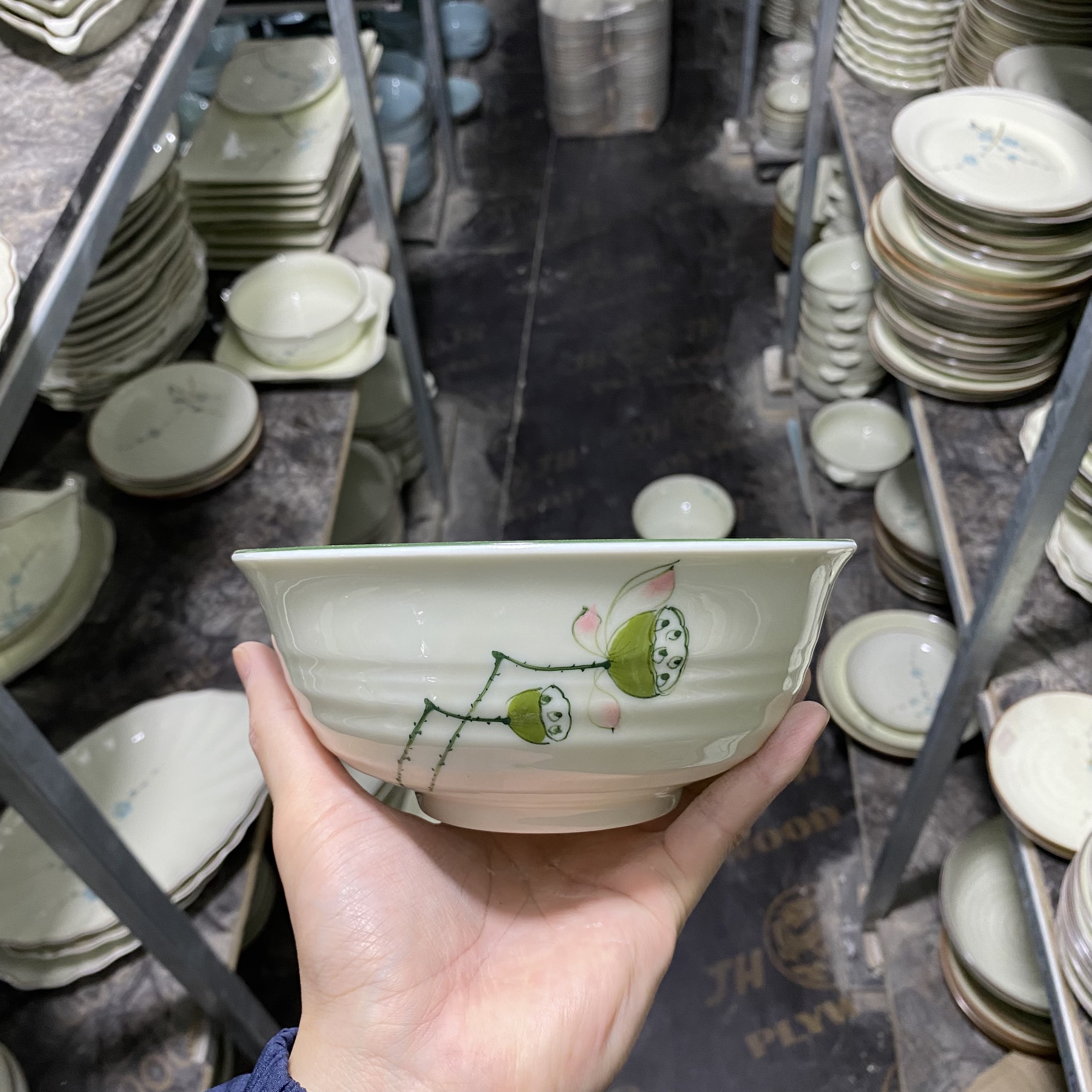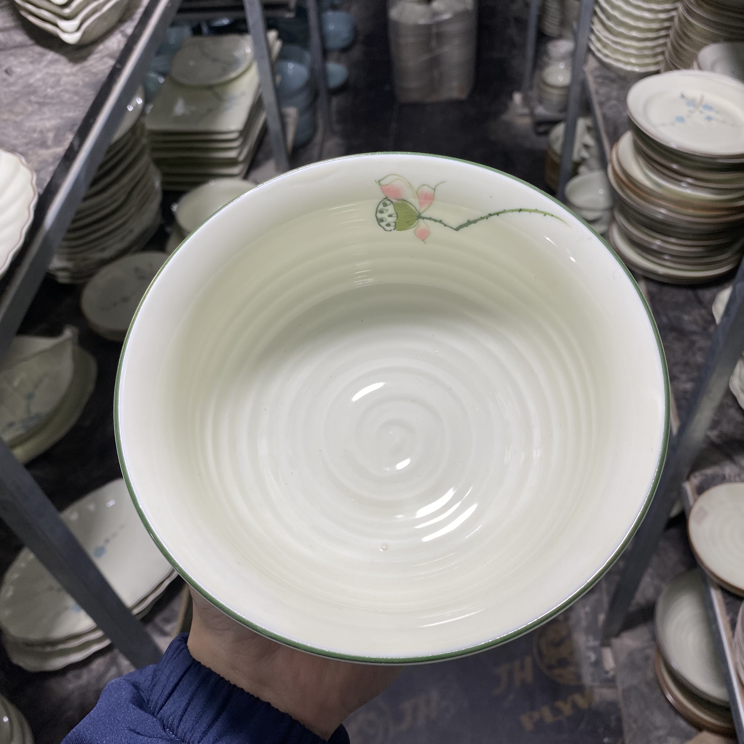 TÊN SẢN PHẨM: Bát tô loe men kem vẽ đài sen