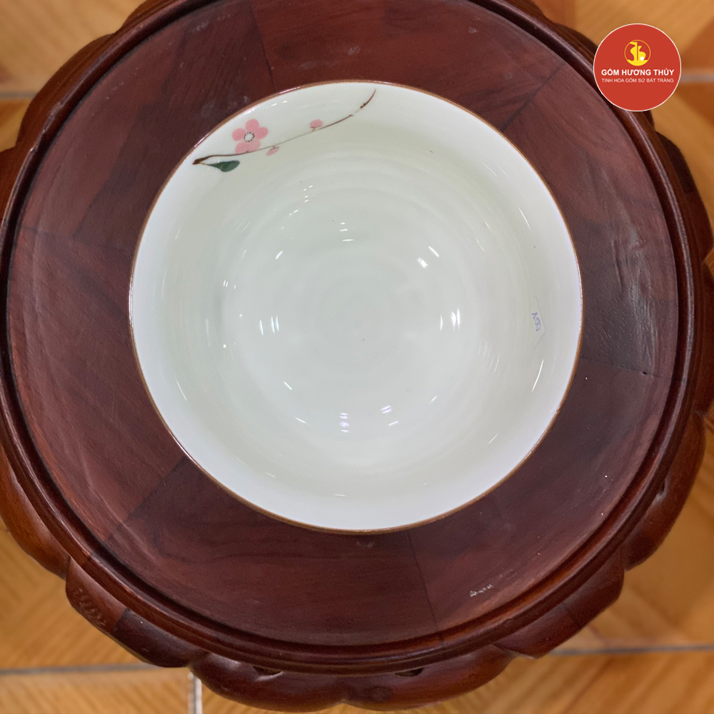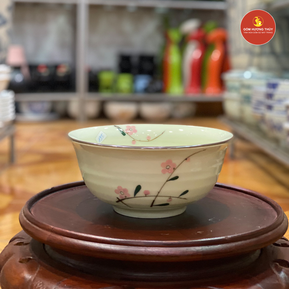 TÊN SẢN PHẨM: Bát tô loe miệng men kem vẽ đào hồng