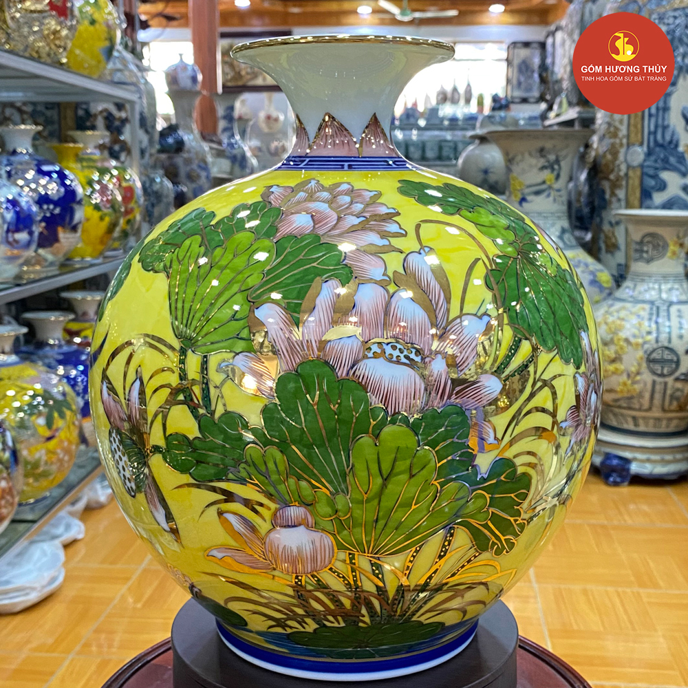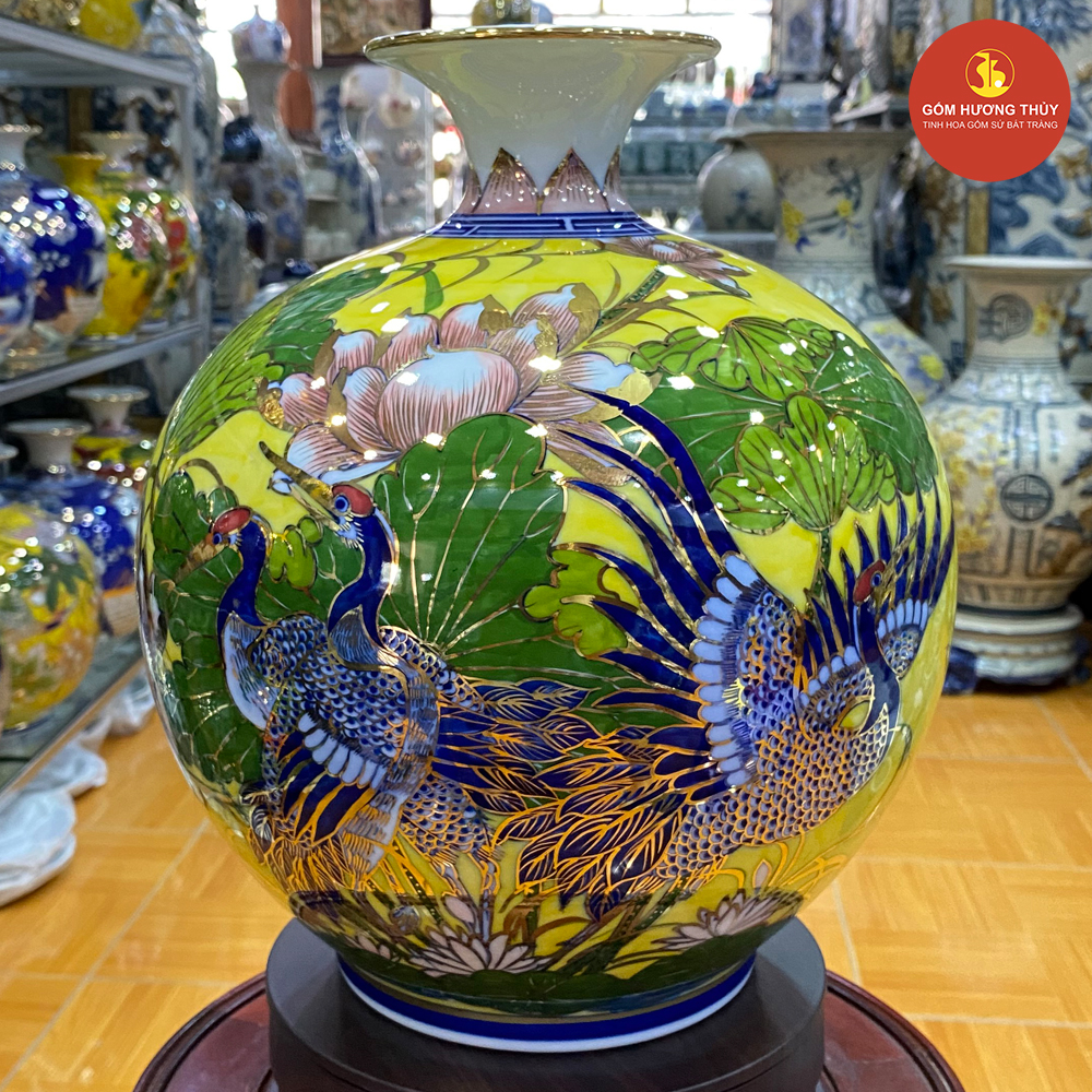 TÊN SẢN PHẨM: Bình hút lộc Chim hạc nền vàng vẽ vàng kim