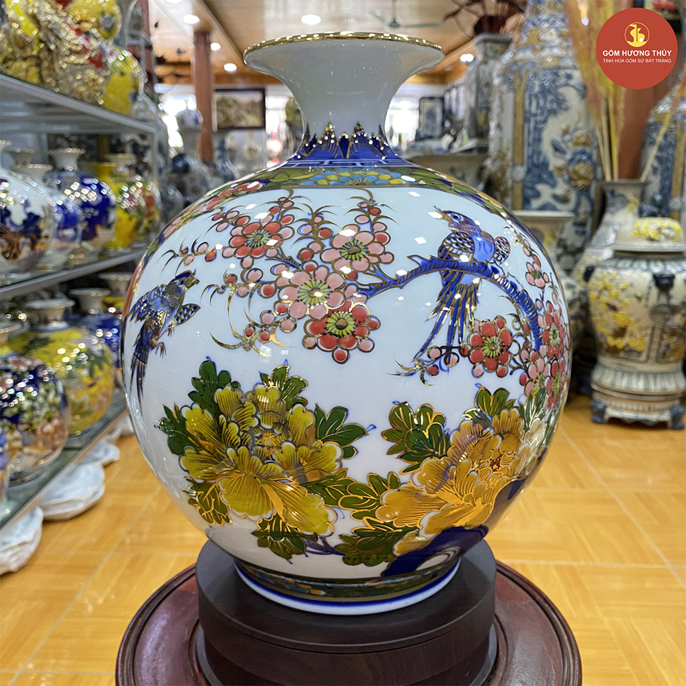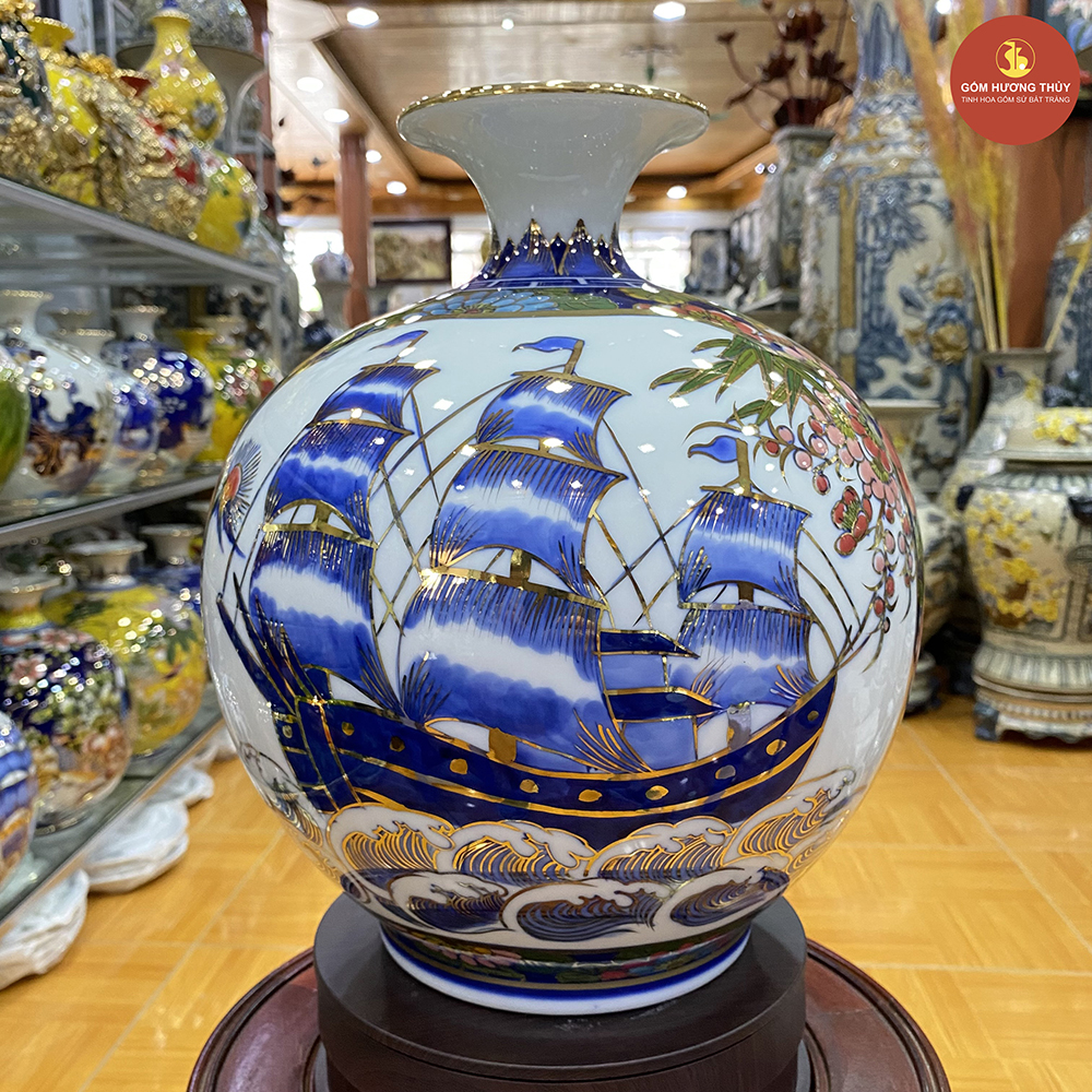 TÊN SẢN PHẨM: Bình hút lộc Nhị cảnh Công đào - Thuyền Vẽ vàng