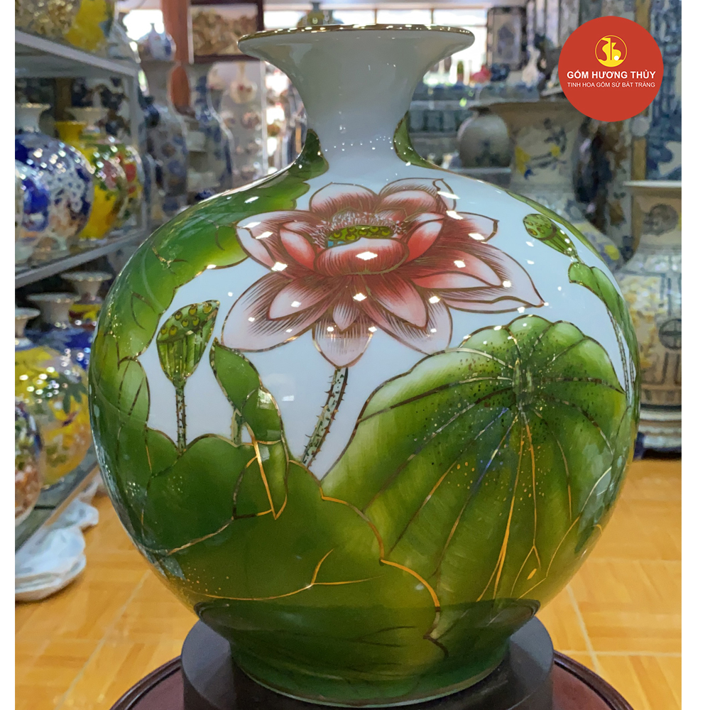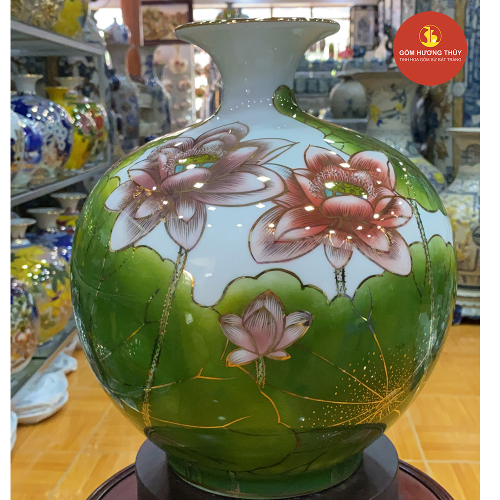 TÊN SẢN PHẨM: Bình hút lộc Sen hồng 3D vẽ vàng
