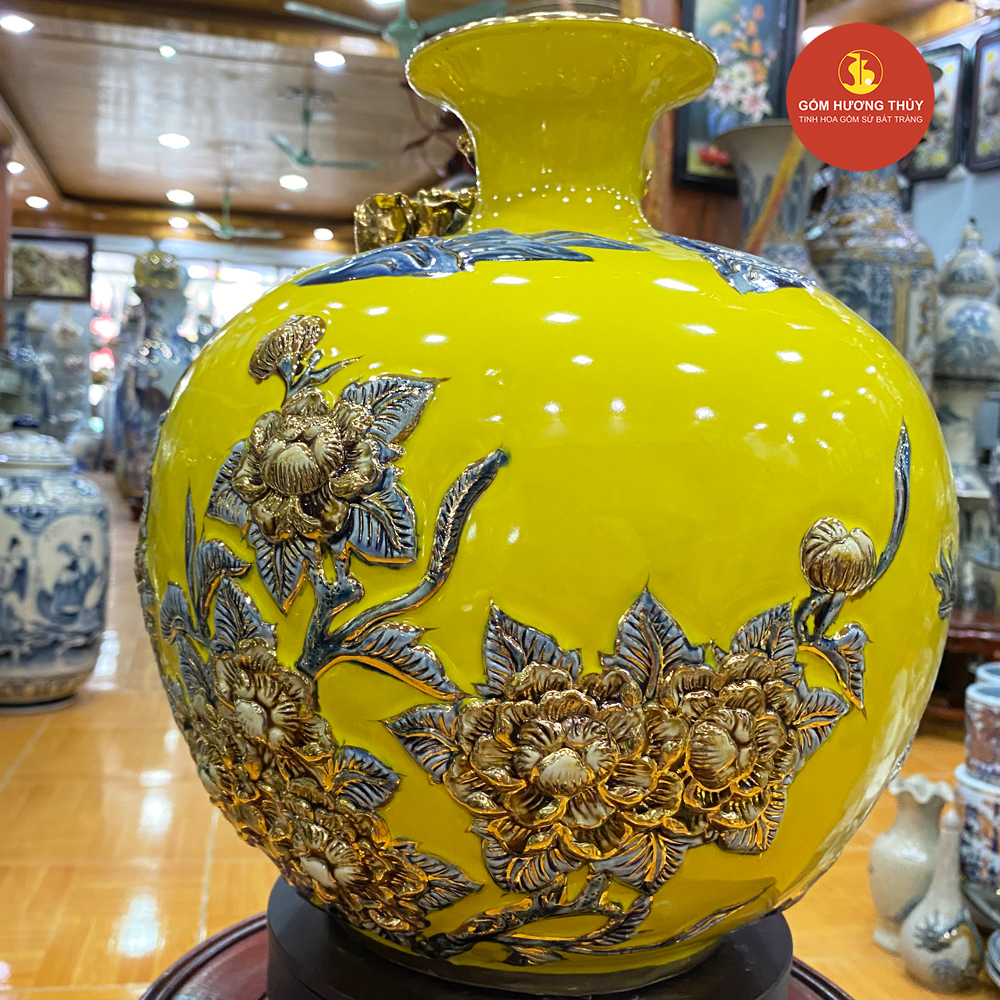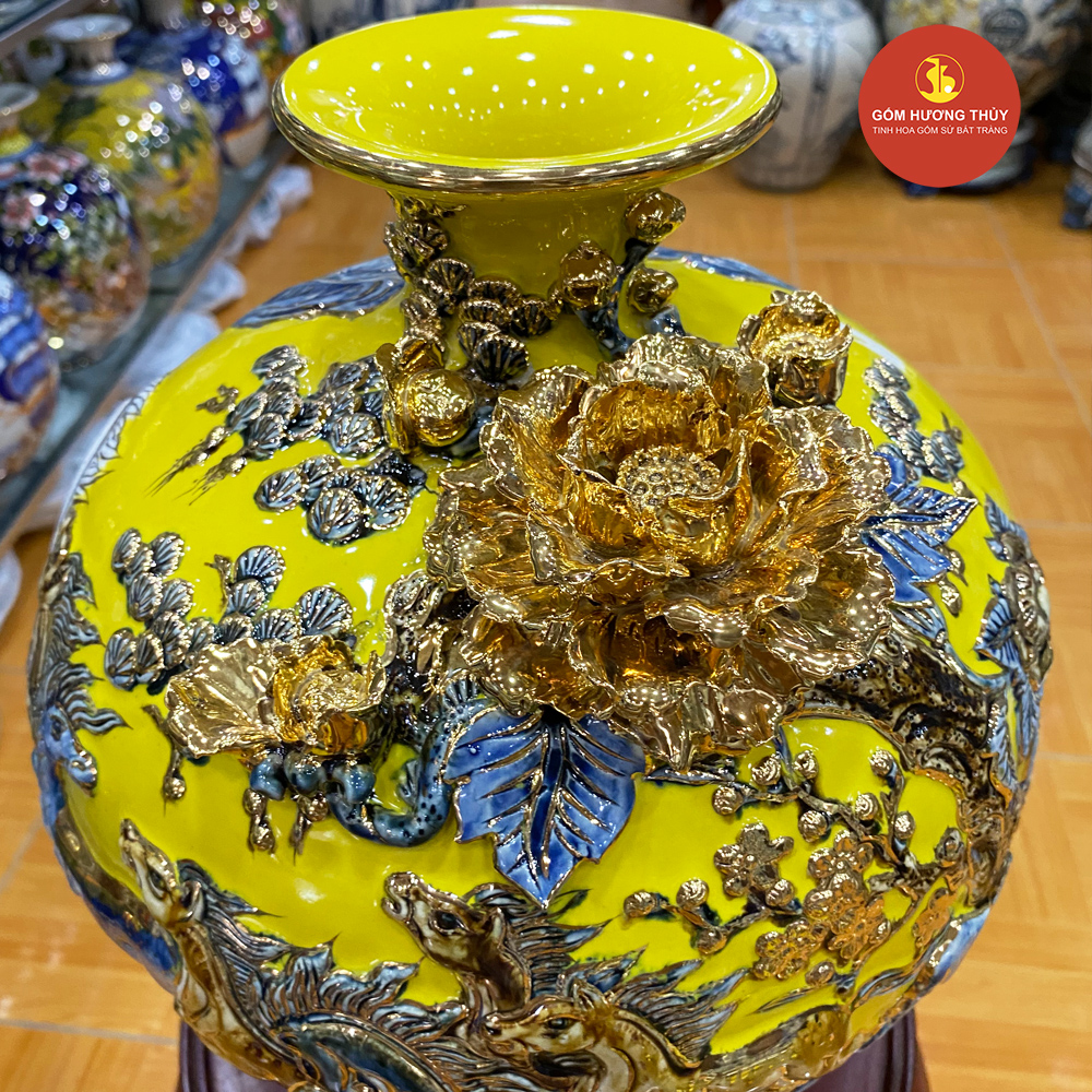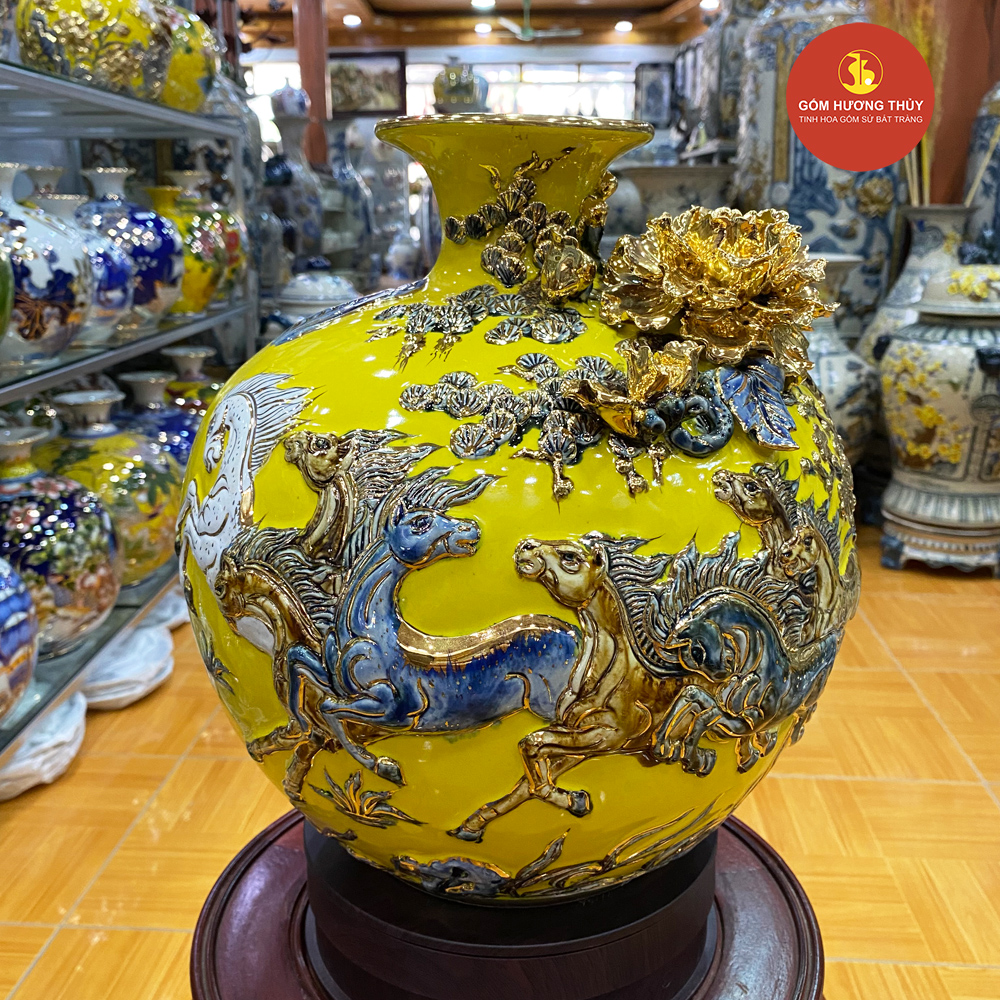 TÊN SẢN PHẨM: Bình hút lộc Bát mã đắp nổi Vẽ vàng