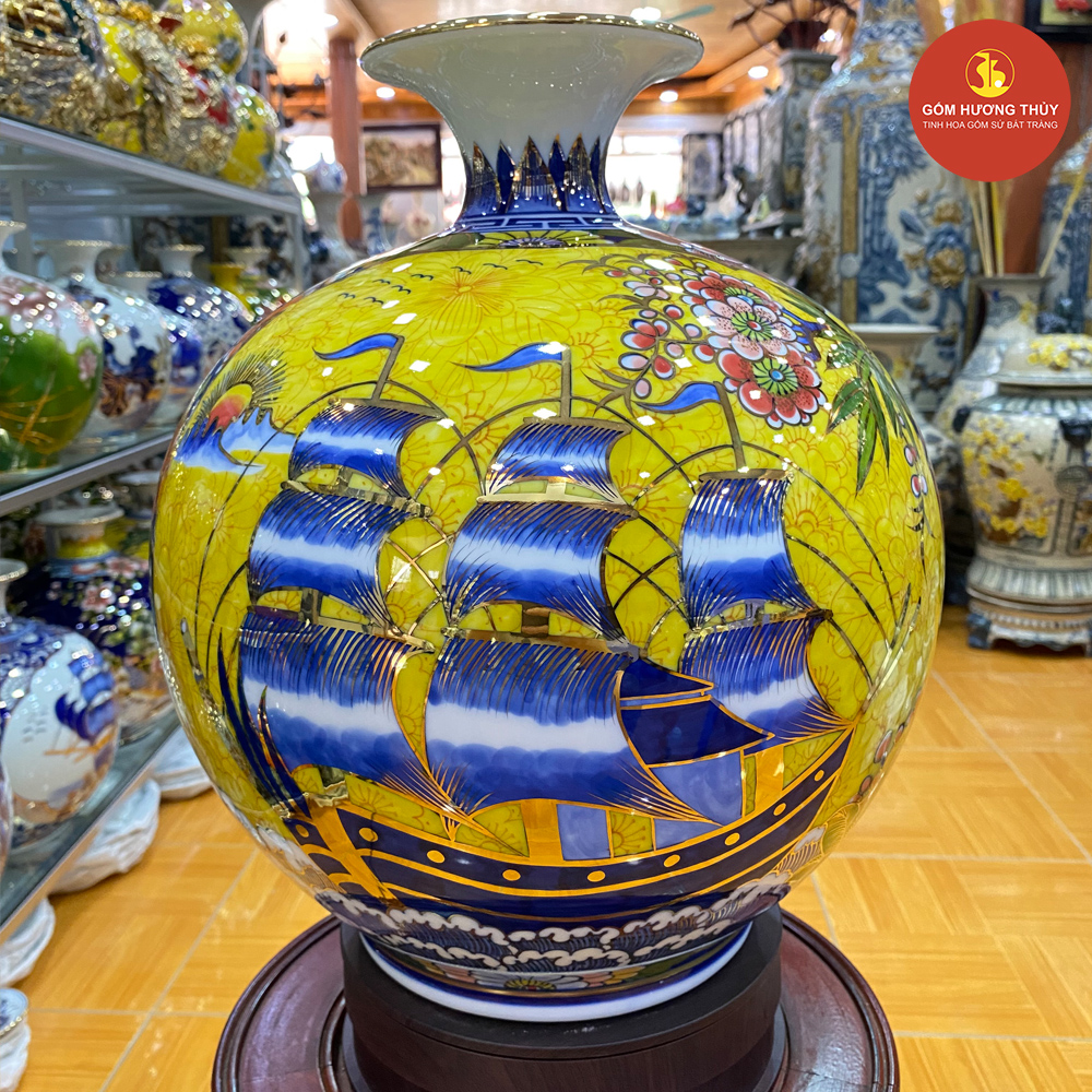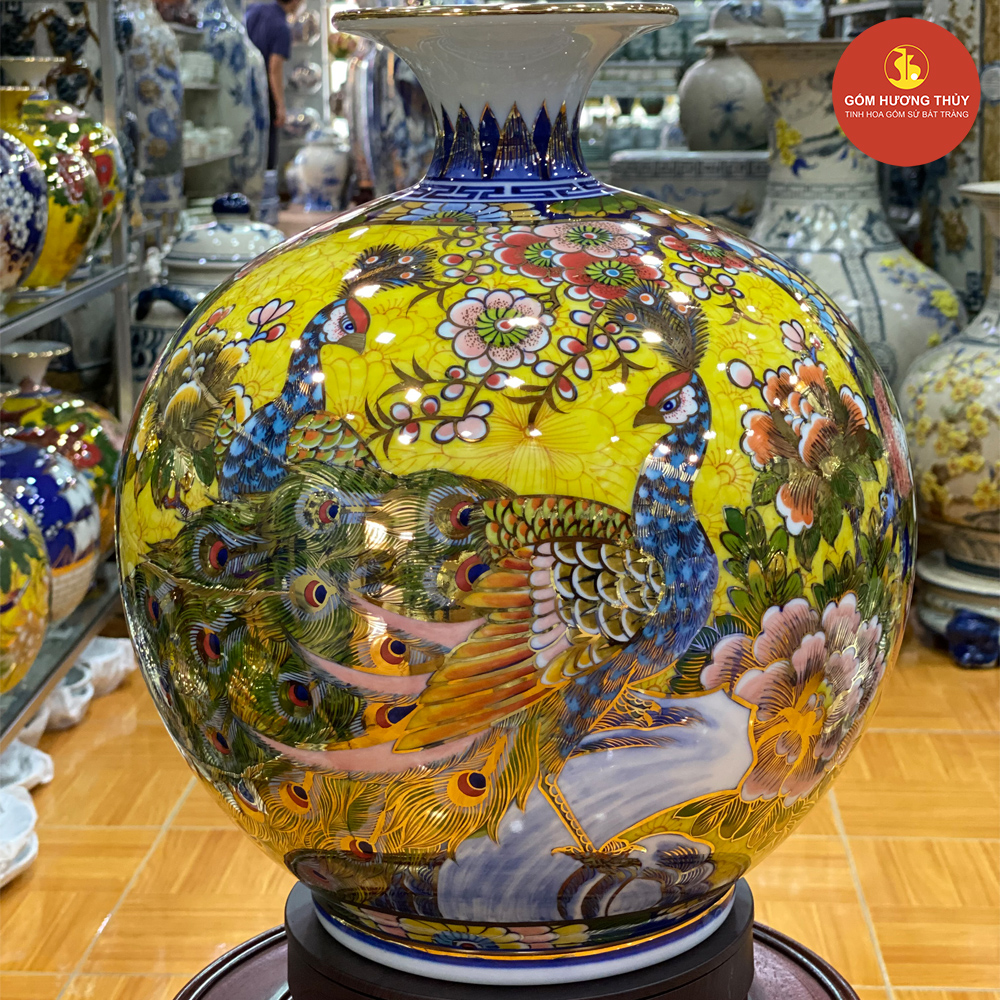 TÊN SẢN PHẨM: Bình hút lộc nhị cảnh Công đào - Thuyền vẽ vàng