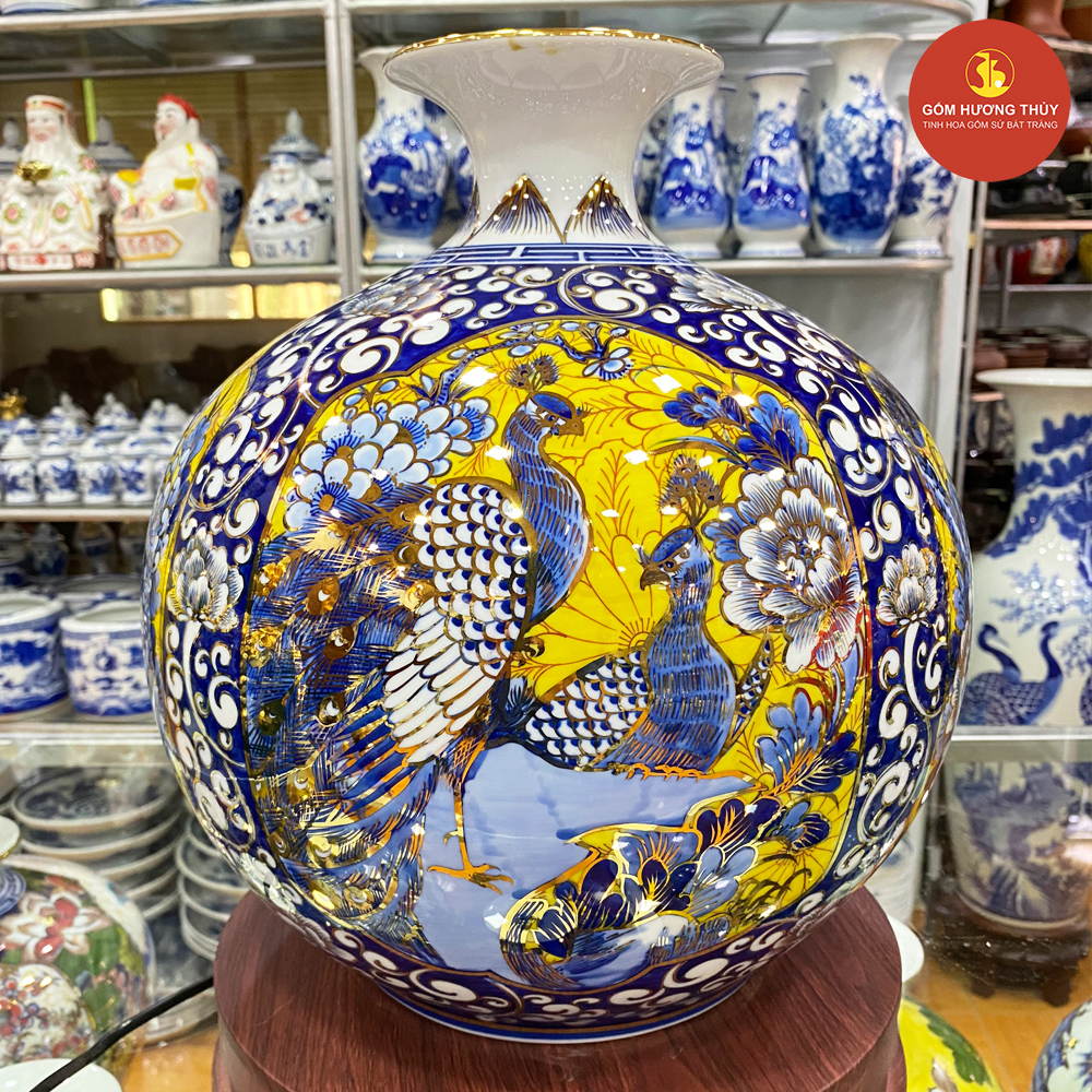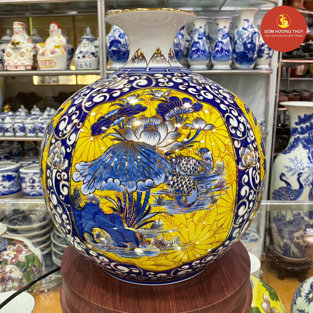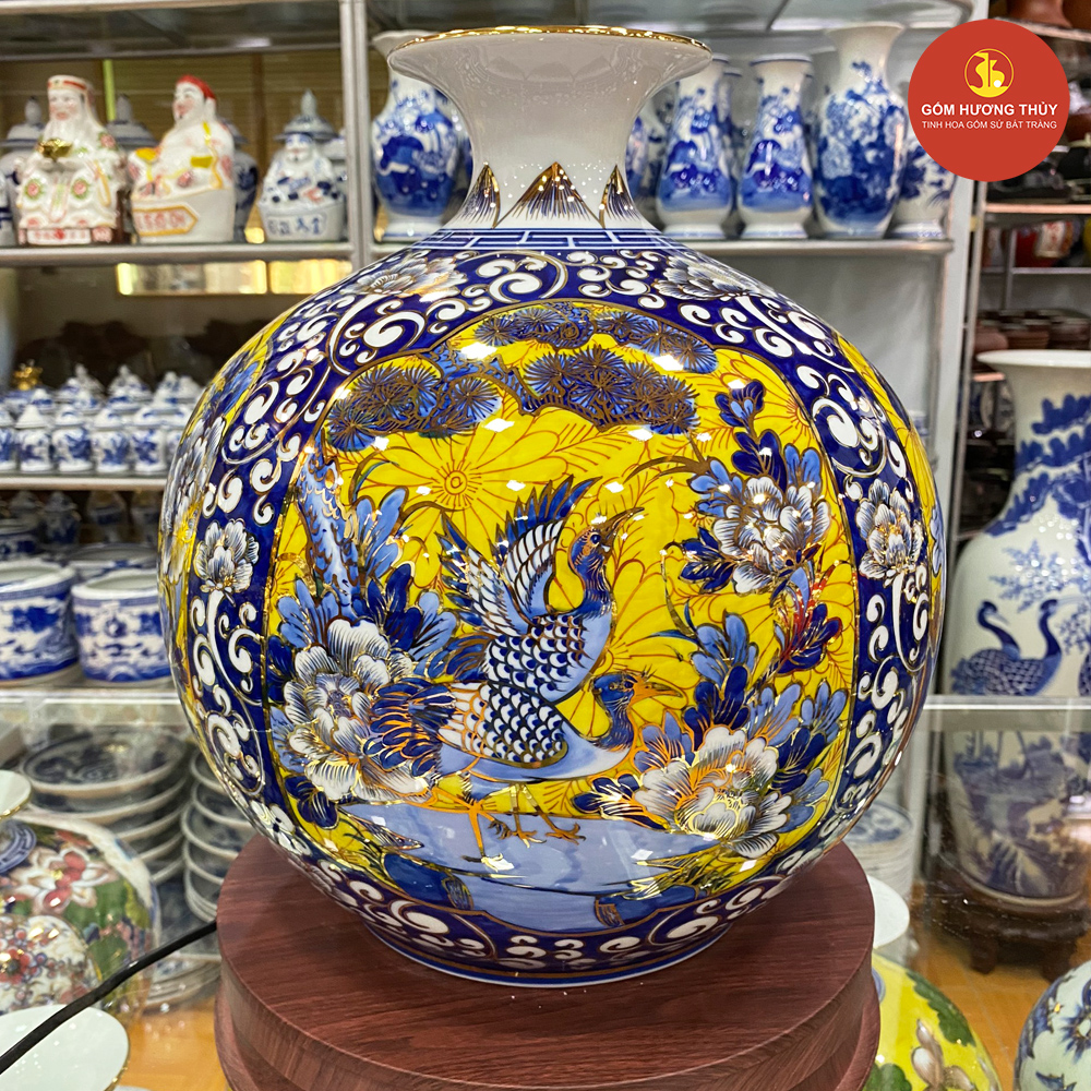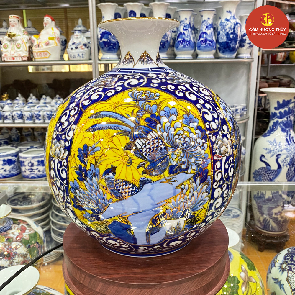 TÊN SẢN PHẨM: Bình hút lộc Tứ cảnh khung nền vàng Vẽ vàng