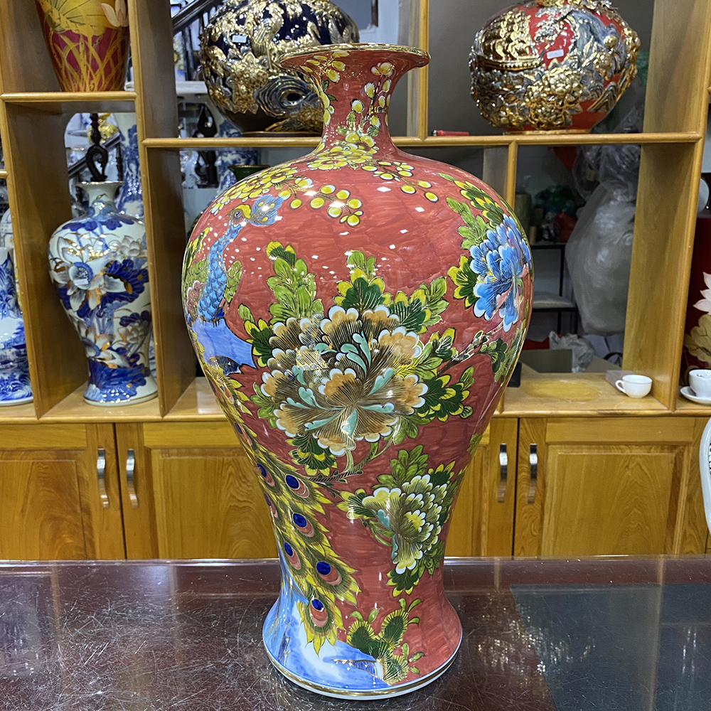 TÊN SẢN PHẨM: Bình Hút Lộc dáng Mai bình nền đỏ H50
