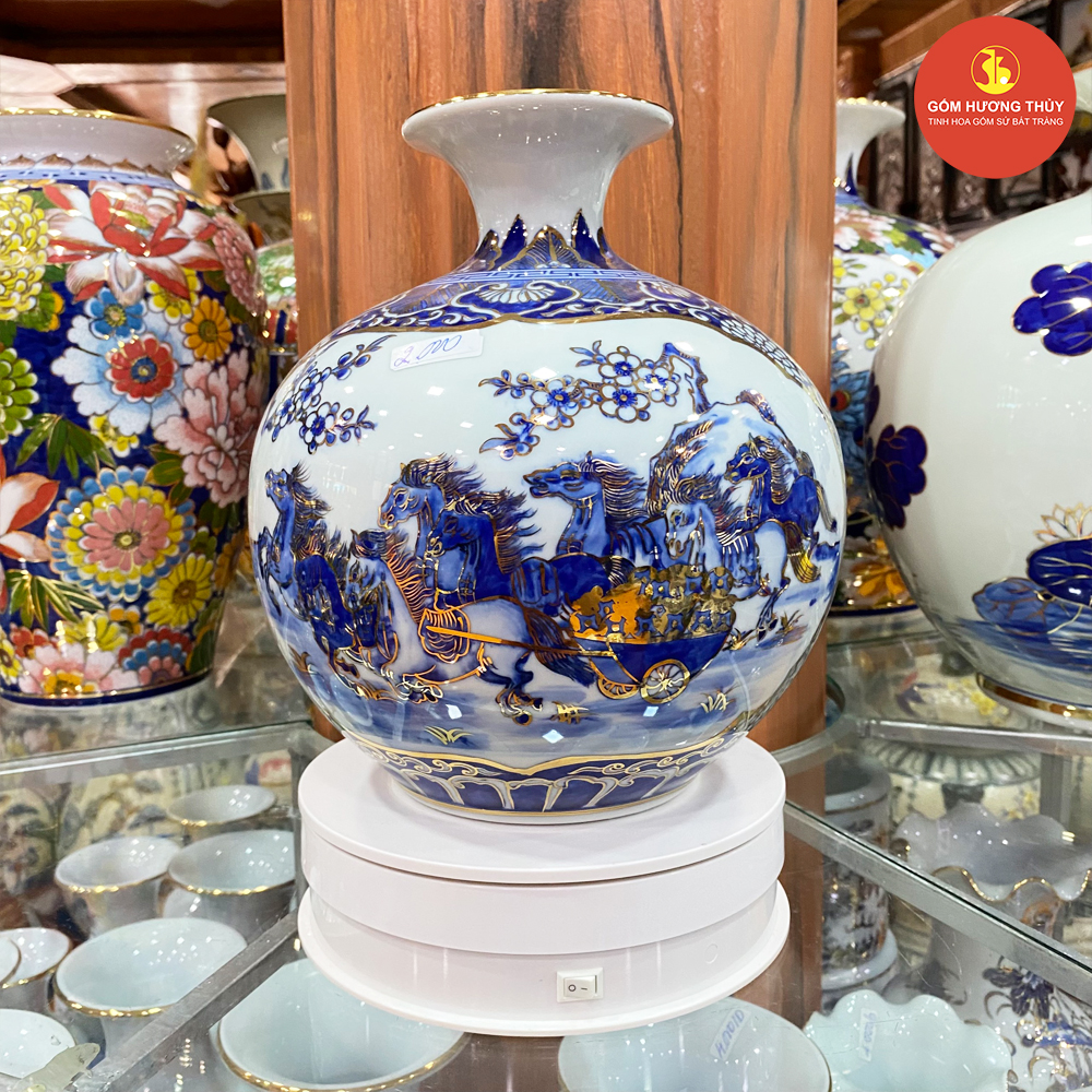 TÊN SẢN PHẨM: Bình hút lộc H25 nhị cảnh khung thuyền - bát mã men dong vẽ vàng kim