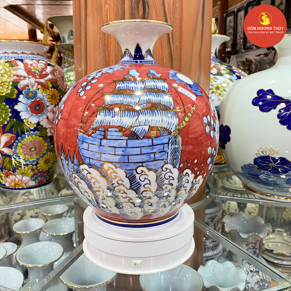 TÊN SẢN PHẨM: Bình hút lộc H30 Thuyền tùng nền đỏ Vẽ vàng kim