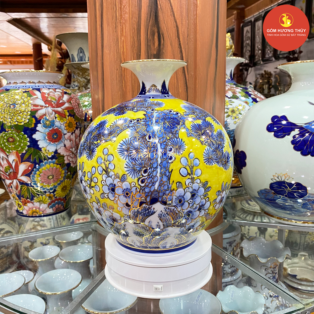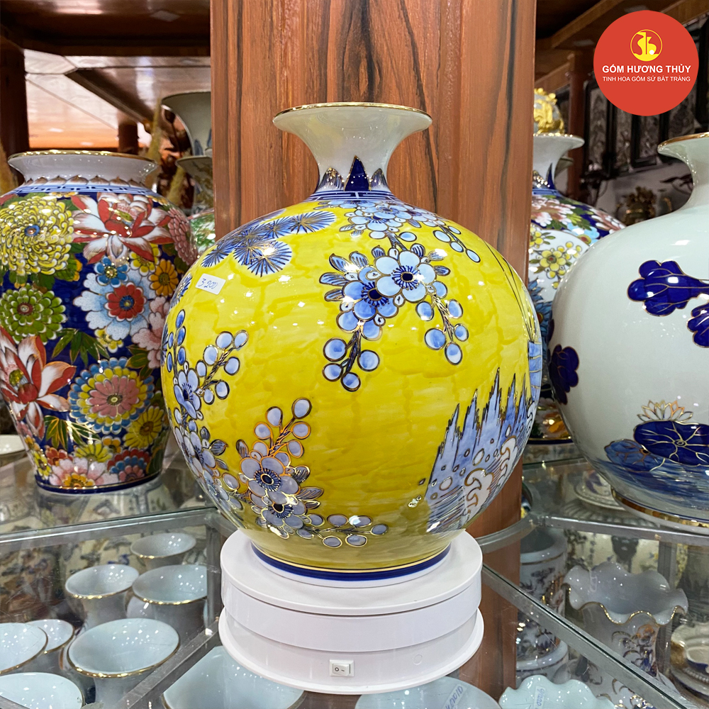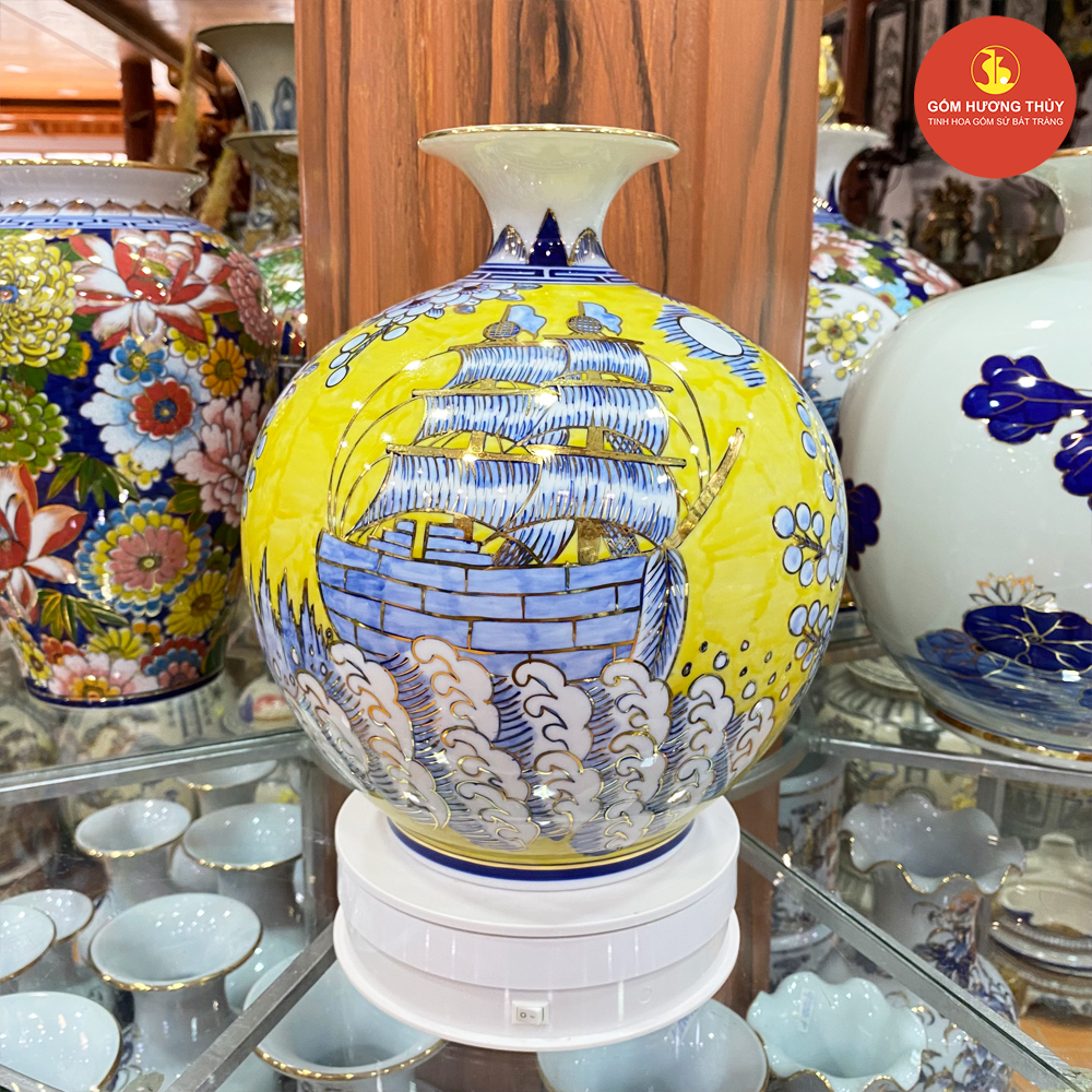 TÊN SẢN PHẨM: Bình hút lộc H30 Thuyền tùng nền vàng Vẽ vàng kim