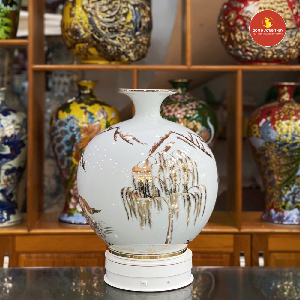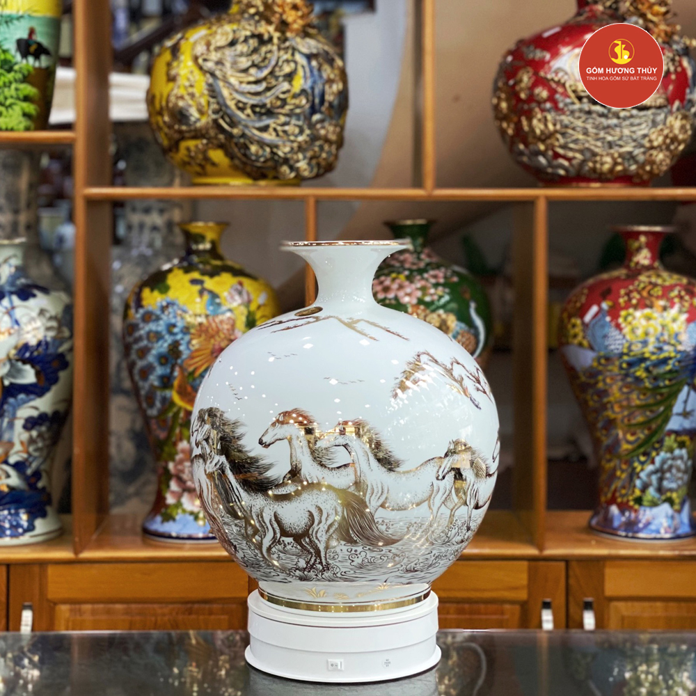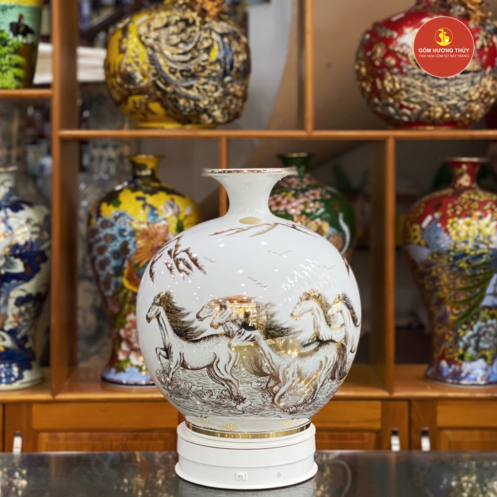 TÊN SẢN PHẨM: Bình Hút Lộc H35 Bát mã Nền Trắng Vẽ Vàng 24K