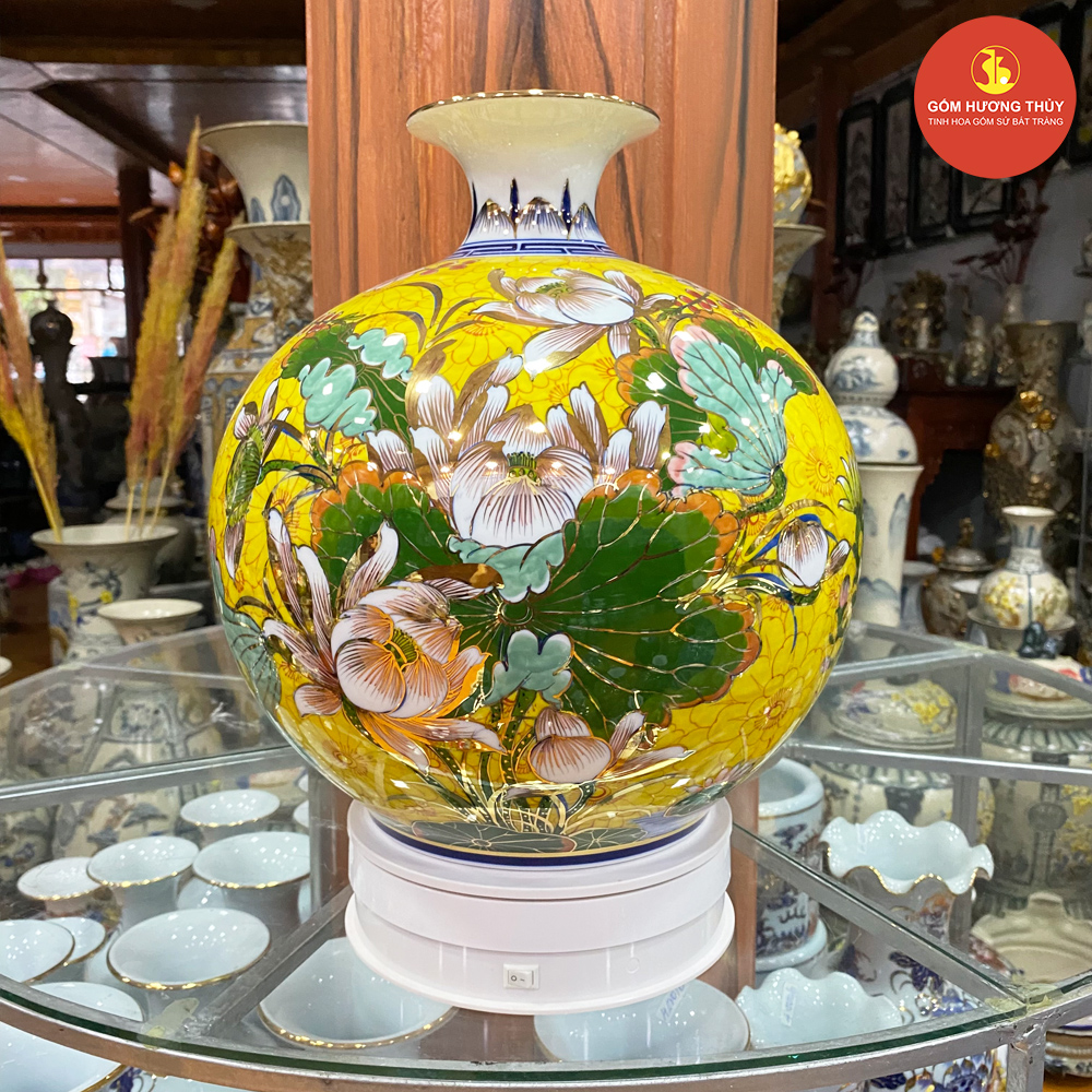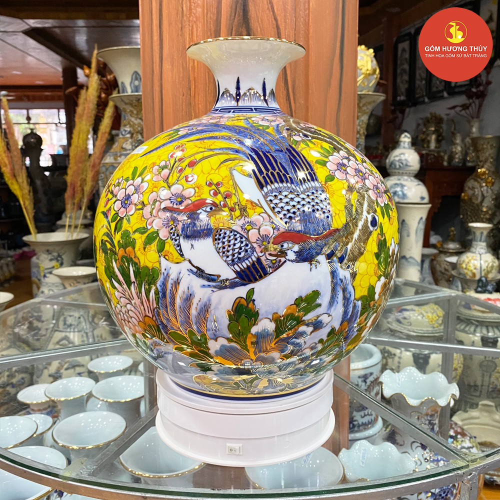 TÊN SẢN PHẨM: Bình hút lộc H35 Chim hoa nền vàng Vẽ vàng kim