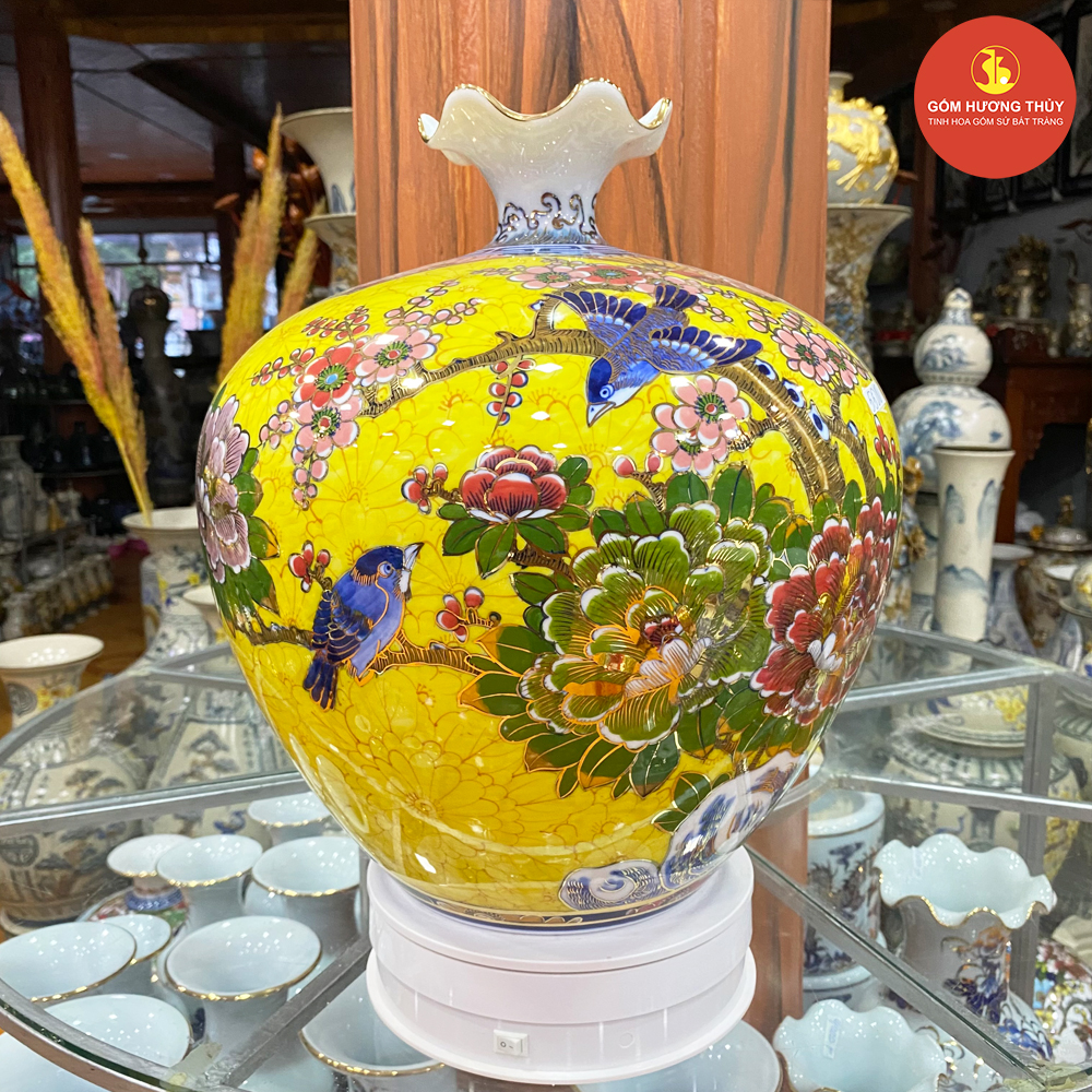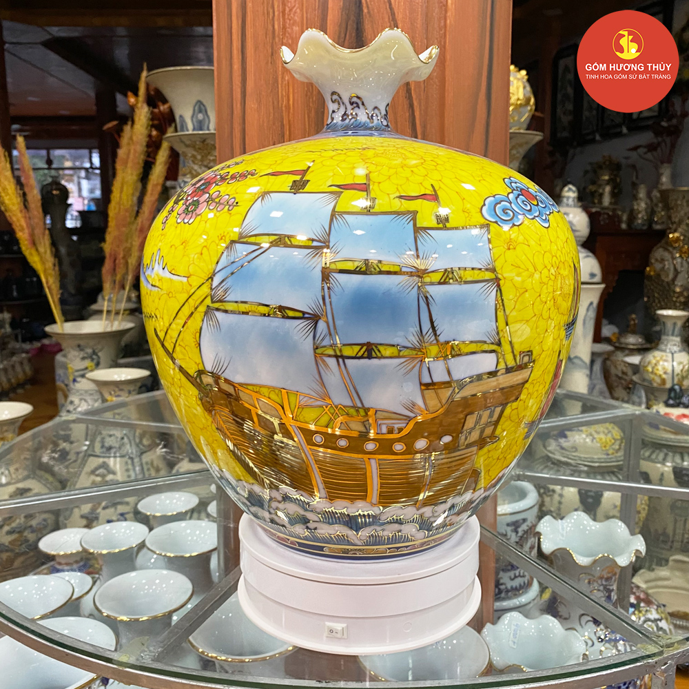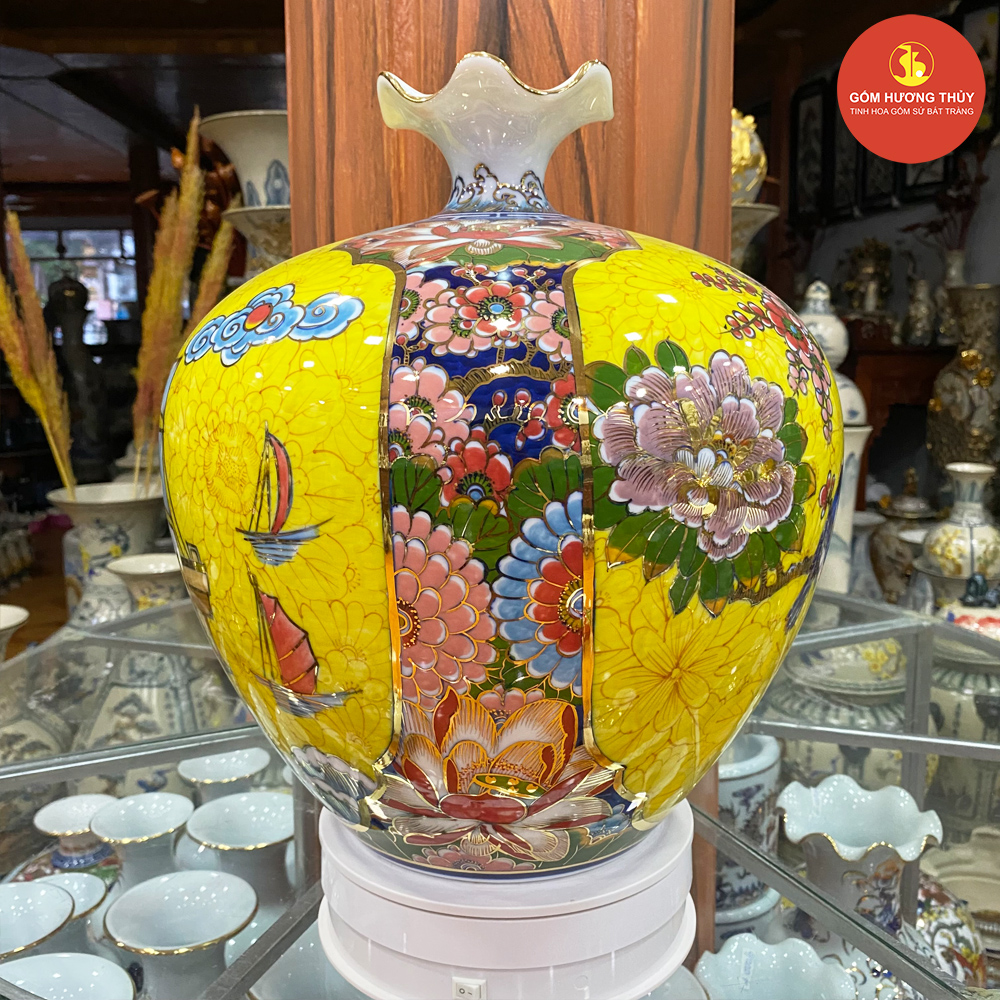 TÊN SẢN PHẨM: Bình hút lộc H35 dáng tim nhị cảnh thuyền-chim hoa Vẽ vàng kim