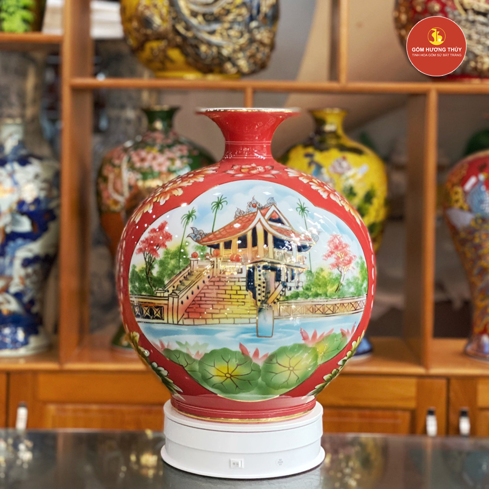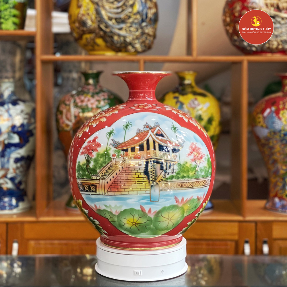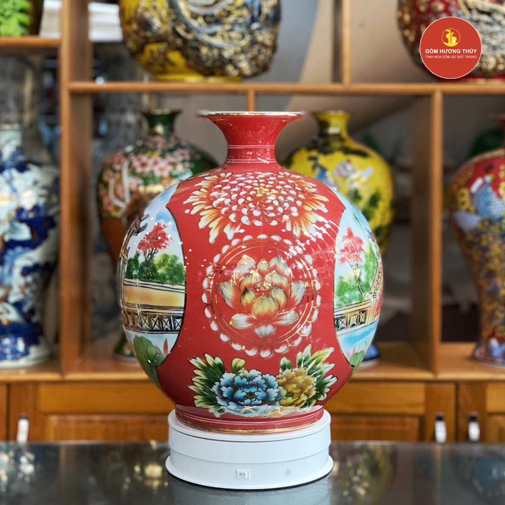 TÊN SẢN PHẨM: Bình Hút Lộc H35 Nhị Cảnh Hà Nội Vẽ Vàng 24K