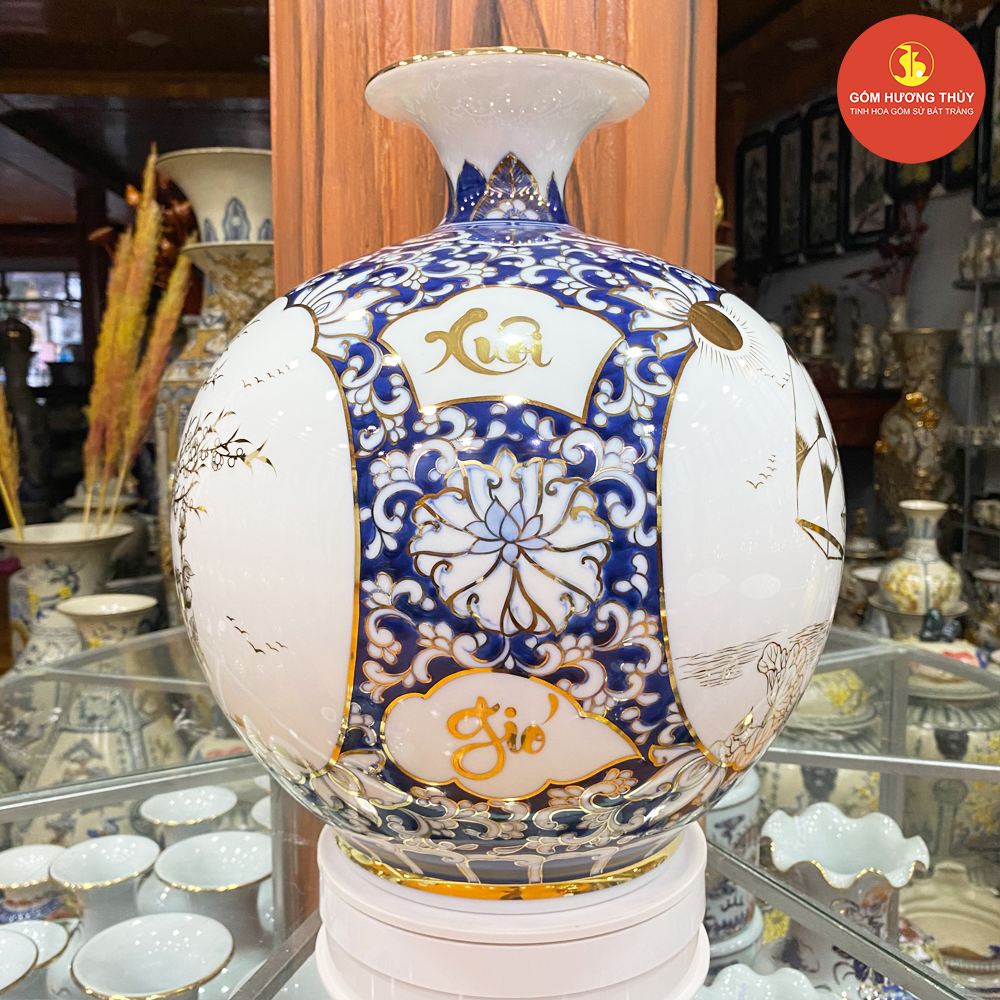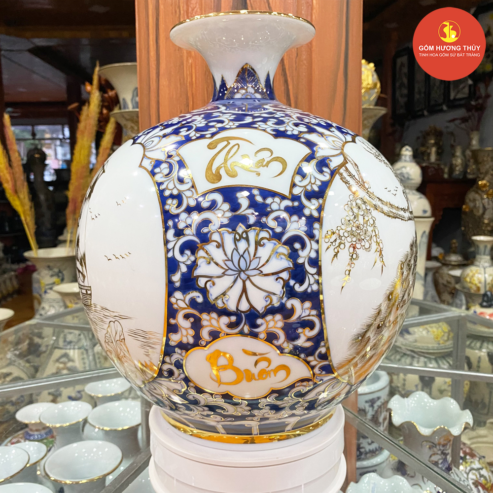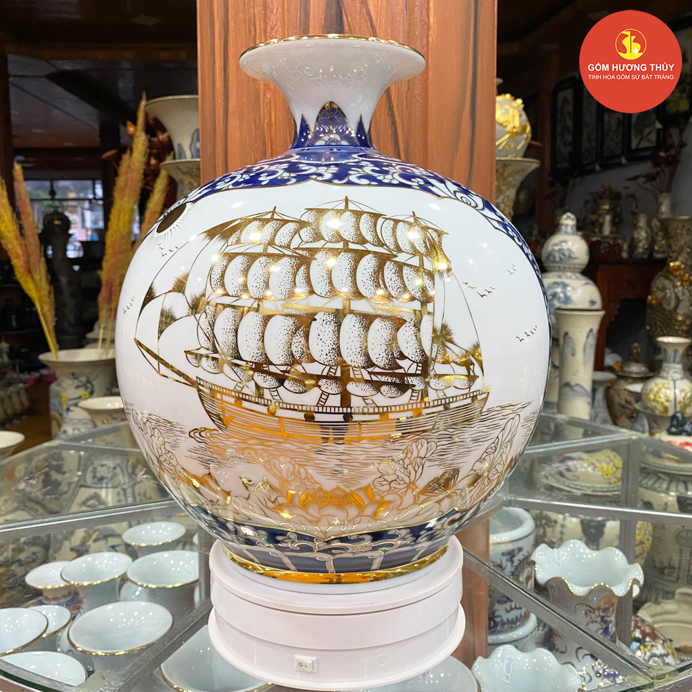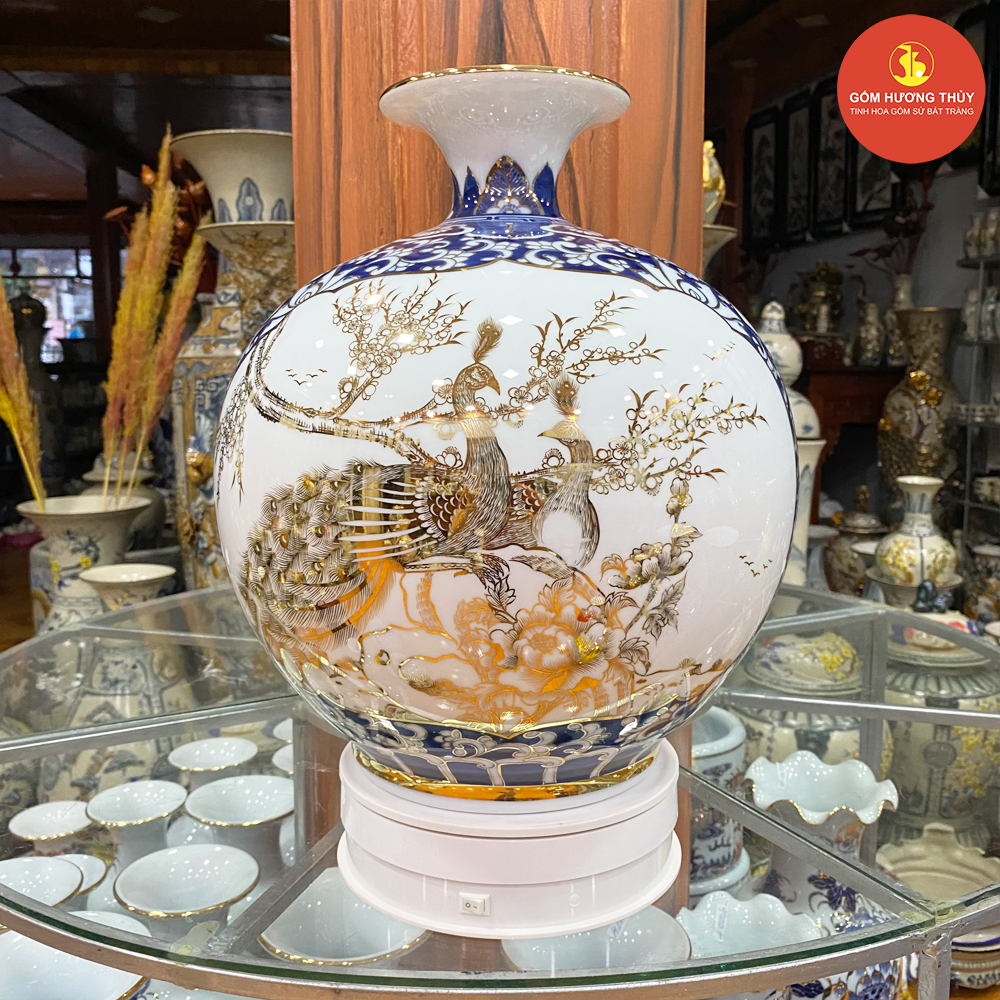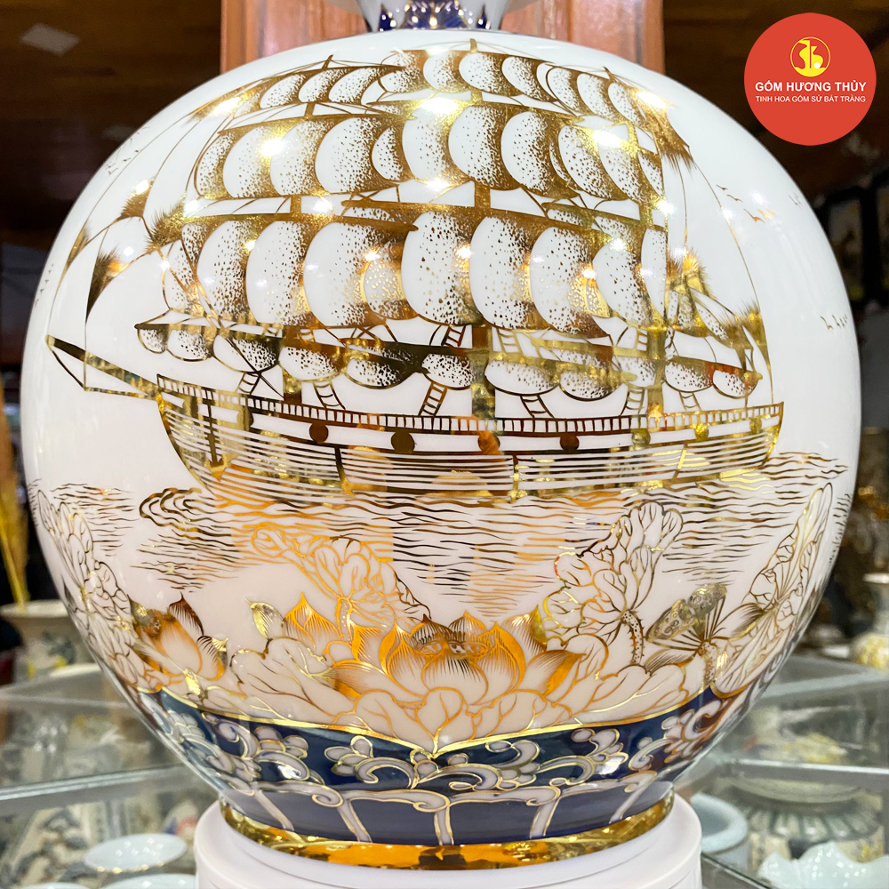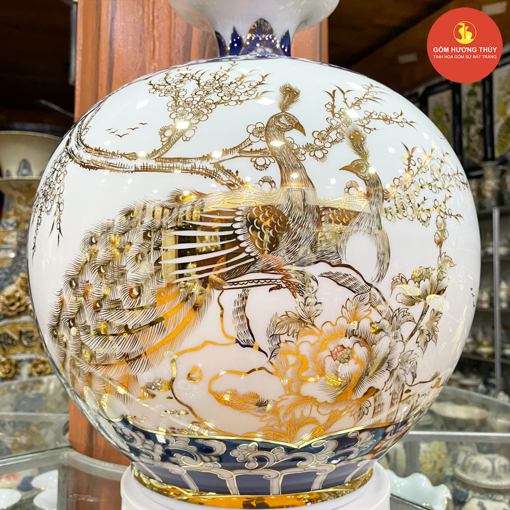 TÊN SẢN PHẨM: Bình hút lộc H35 Nhị cảnh Thuyền - Công Vẽ vàng kim