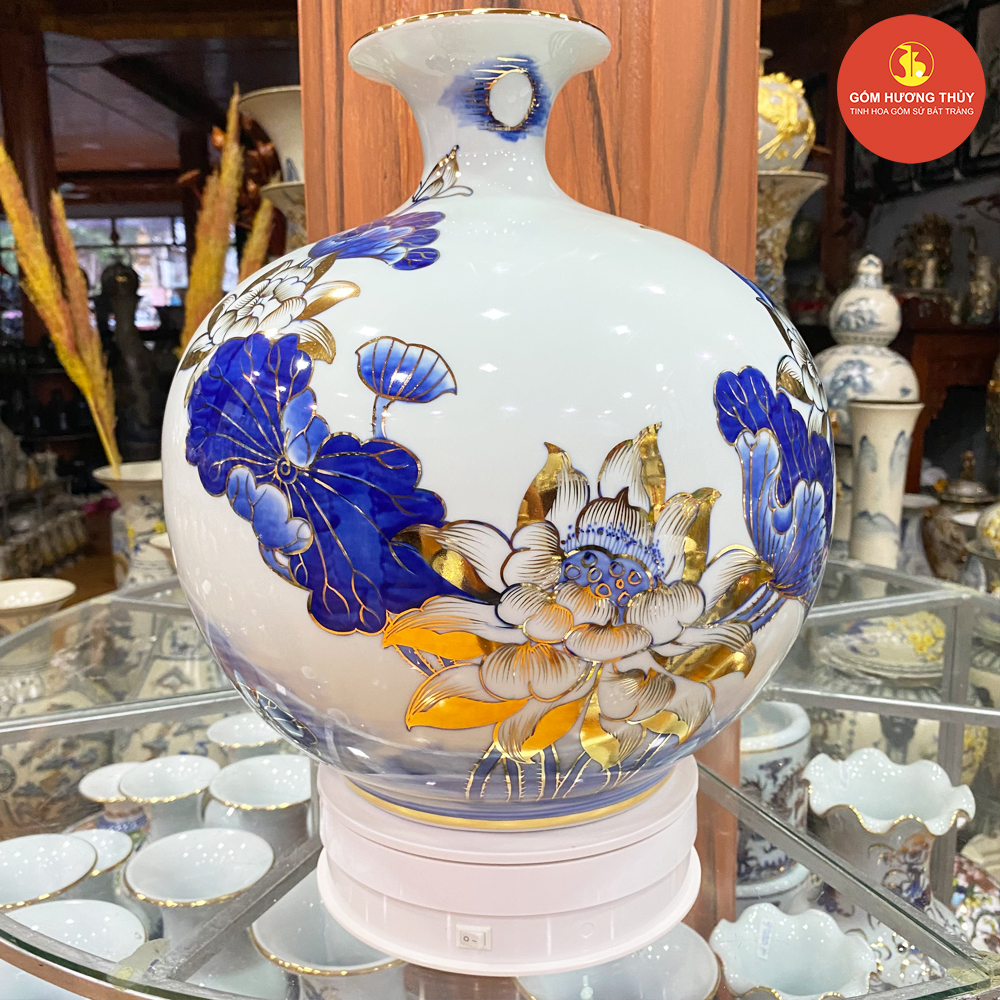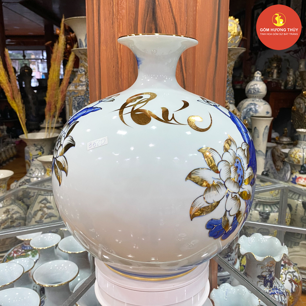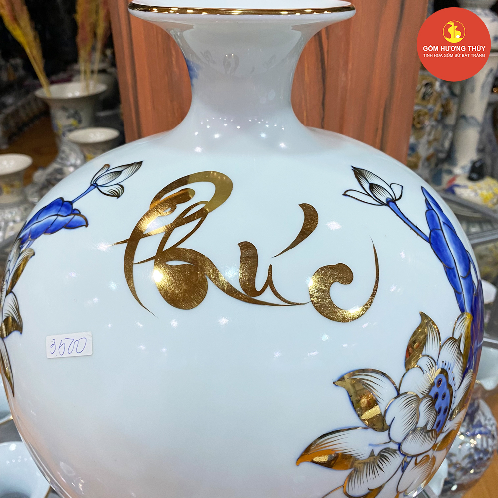 TÊN SẢN PHẨM: Bình hút lộc H35 Sen + Chữ phúc dáng 2 Vẽ vàng kim