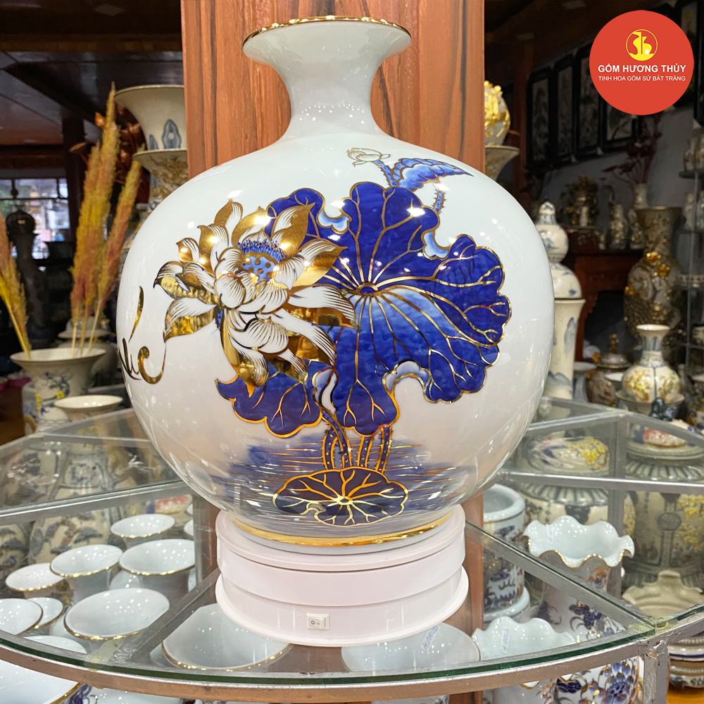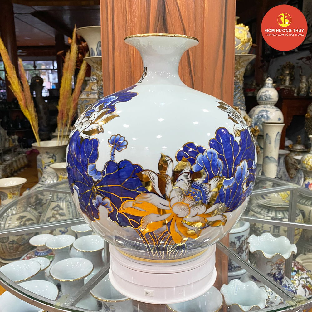 TÊN SẢN PHẨM: Bình hút lộc H35 Sen - Chữ Phúc Vẽ vàng kim