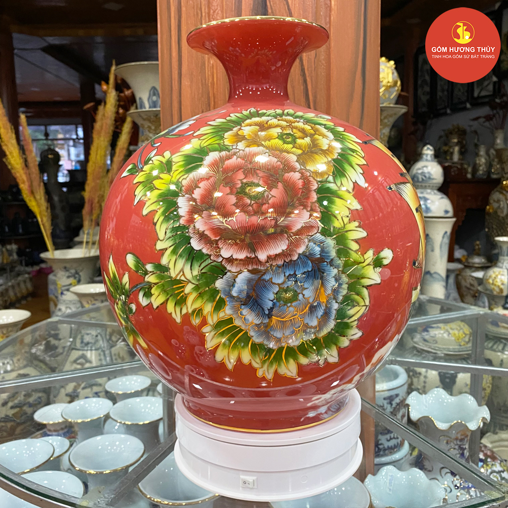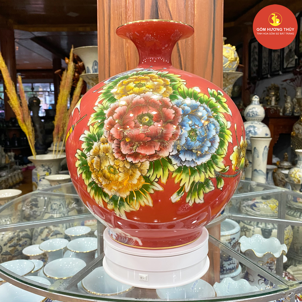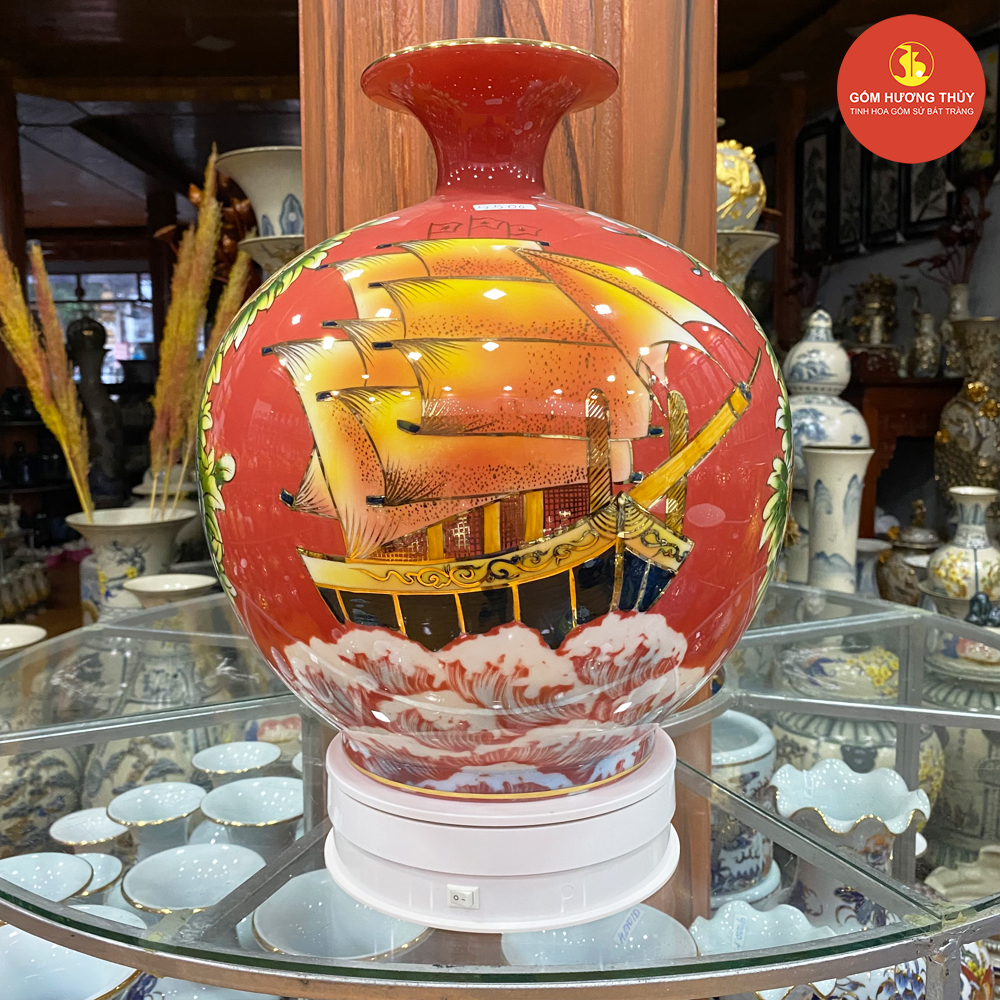 TÊN SẢN PHẨM: Bình hút lộc H35 Thuyền 3D nền đỏ Vẽ vàng kim