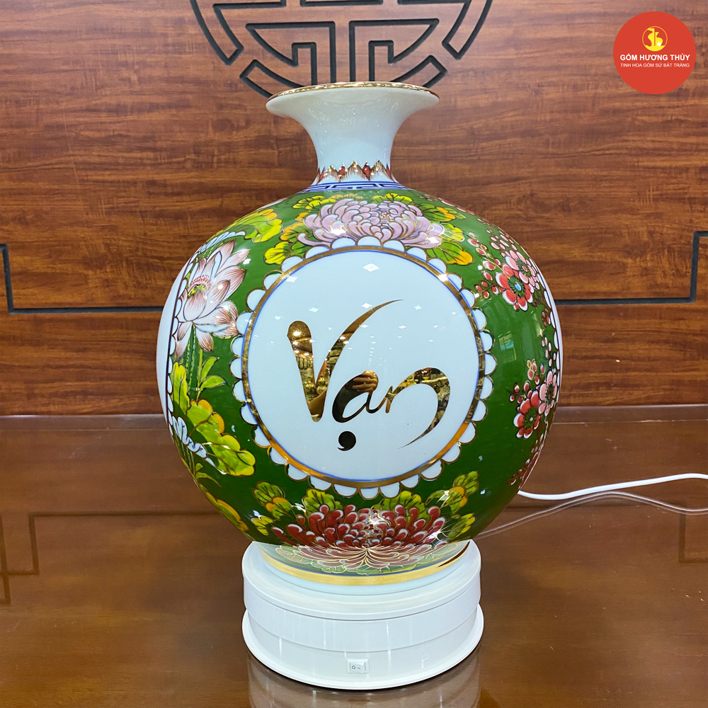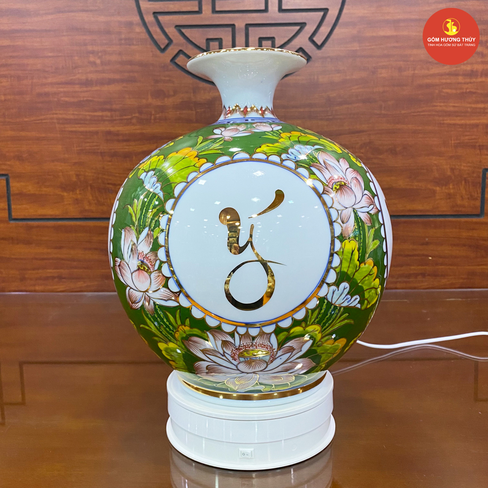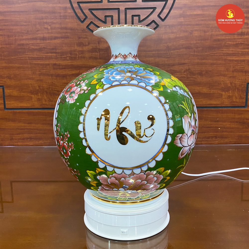 TÊN SẢN PHẨM: Bình hút lộc H35 Vạn Sự Như Ý nền xanh lá Vẽ vàng 24K