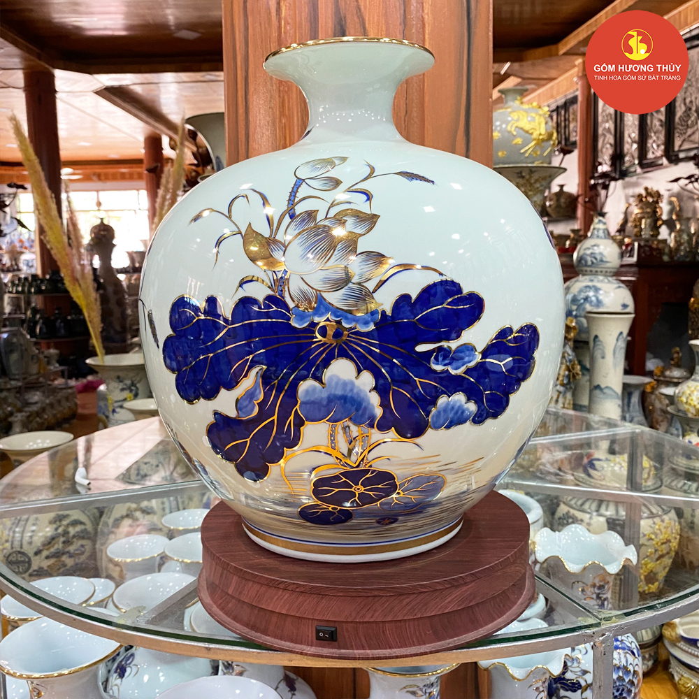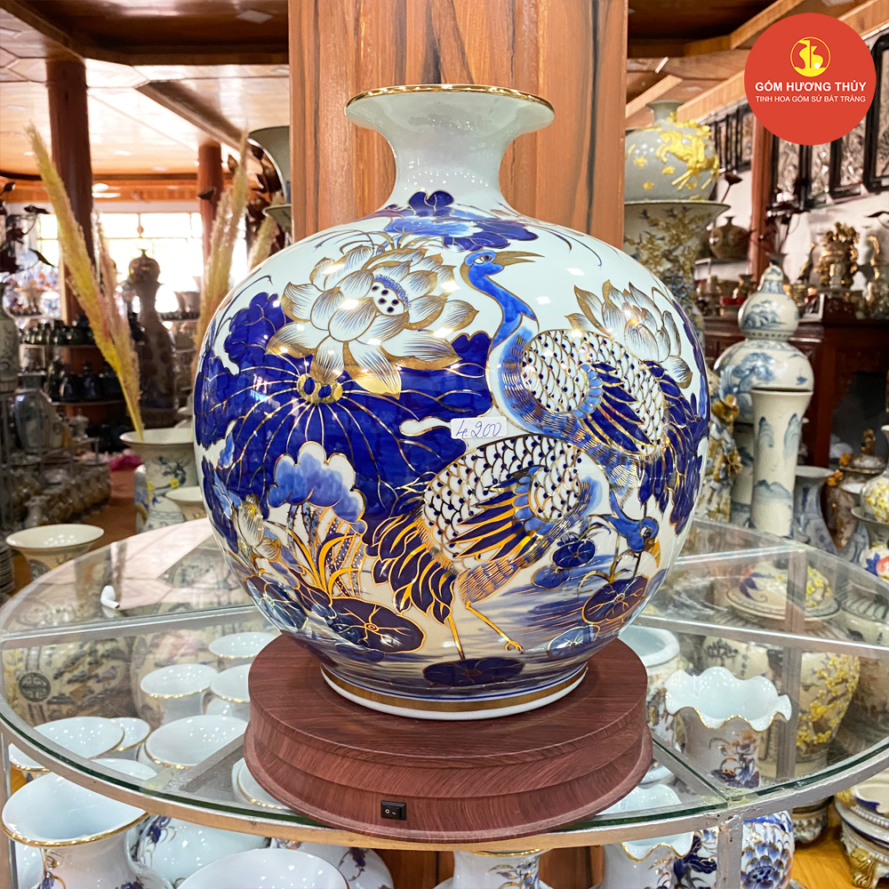 TÊN SẢN PHẨM: Bình hút lộc H40 Sen hạc men dong Vẽ vàng kim