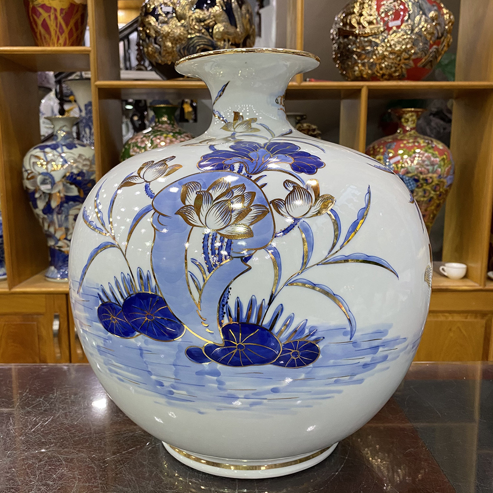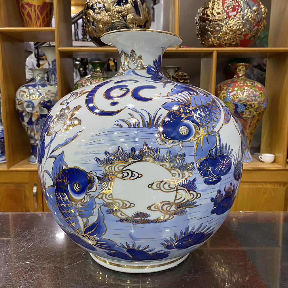 TÊN SẢN PHẨM: Bình hút lộc Sen Cá + Chữ H38 Vẽ Vàng Kim