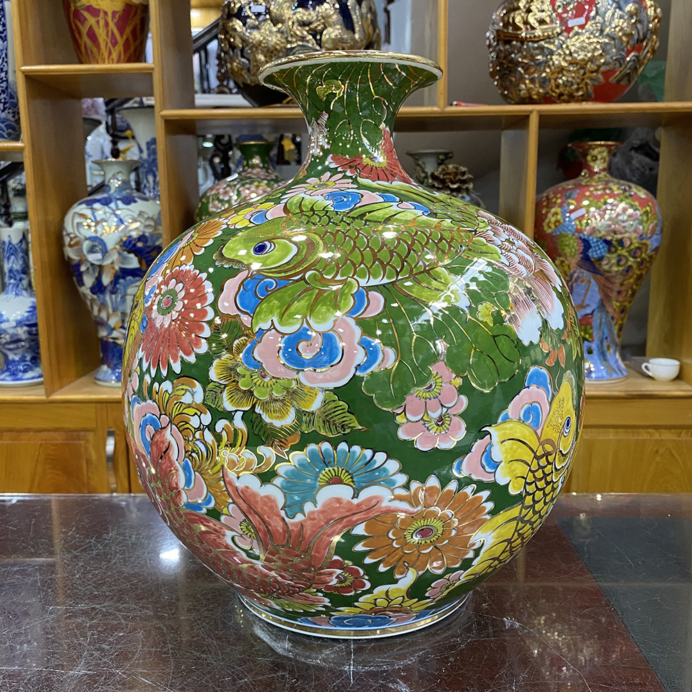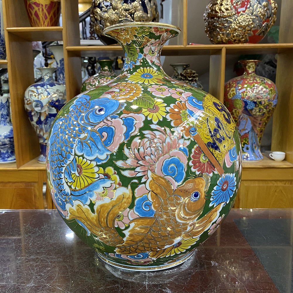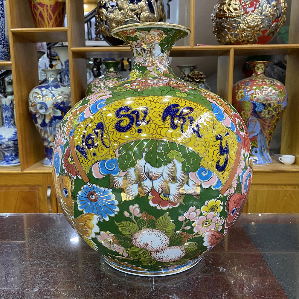 TÊN SẢN PHẨM: Bình hút lộc Vạn Sự Như Ý nền màu H38 Vẽ vàng kim