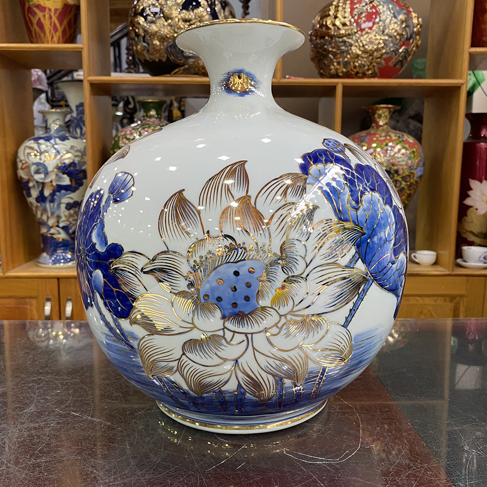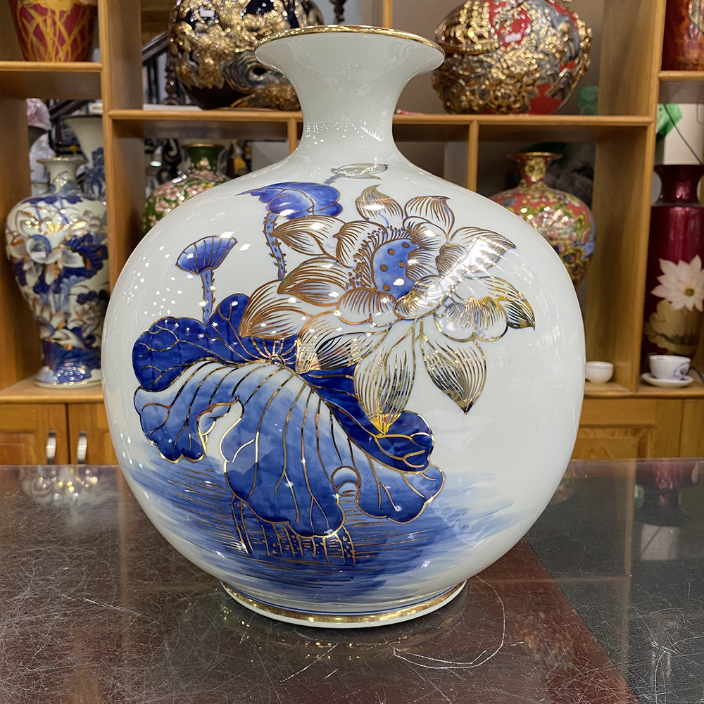 TÊN SẢN PHẨM: Bình hút lộc vẽ Sen H35 Vẽ Vàng Kim