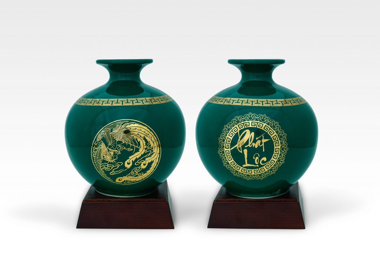 TÊN SẢN PHẨM: Bình Tài Lộc Cao 22cm Vẽ Vàng