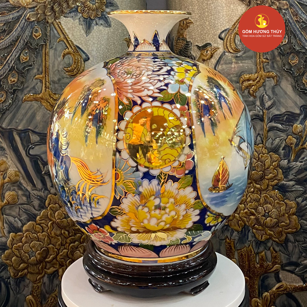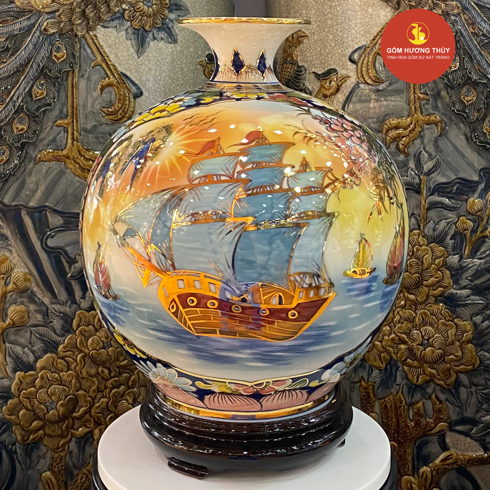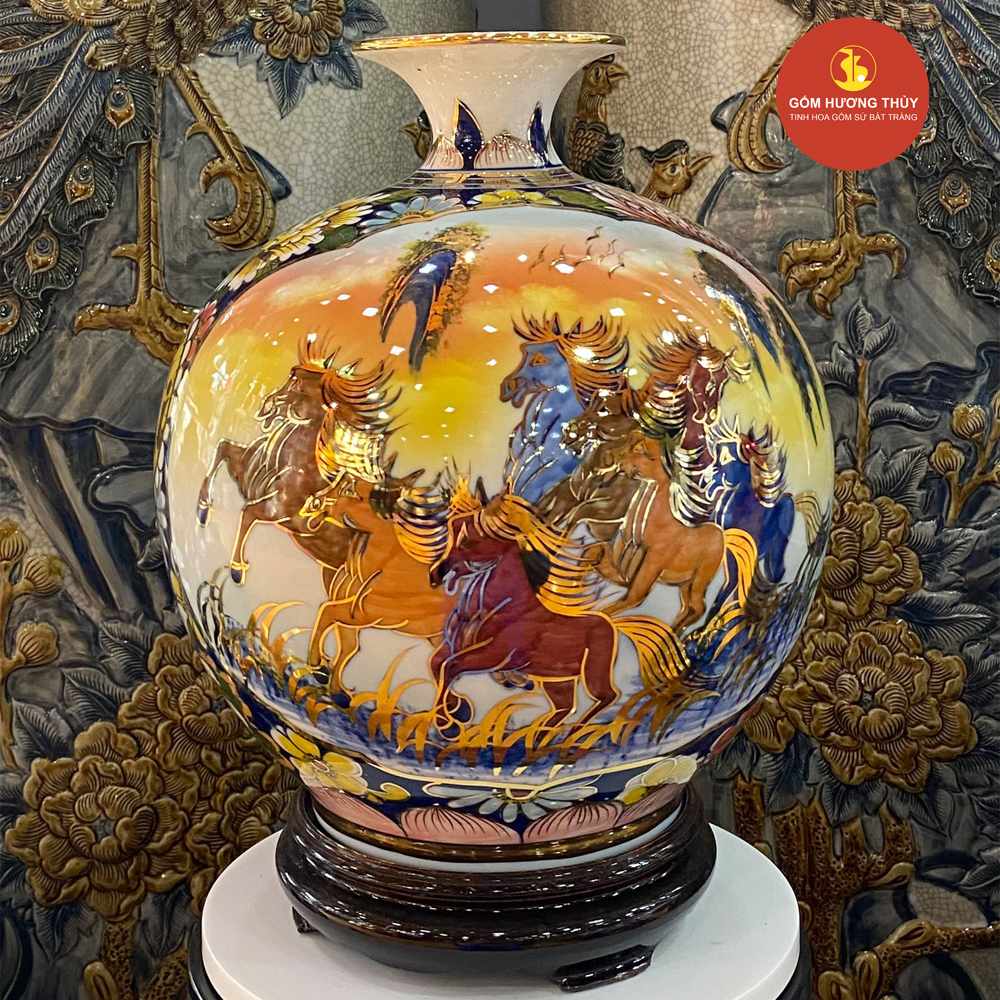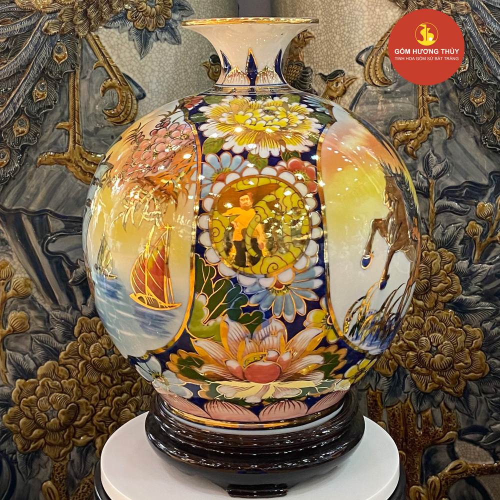 TÊN SẢN PHẨM: Bình Tài Lộc H30 Nhị cảnh Thuyền - Ngựa Vẽ Vàng 24K