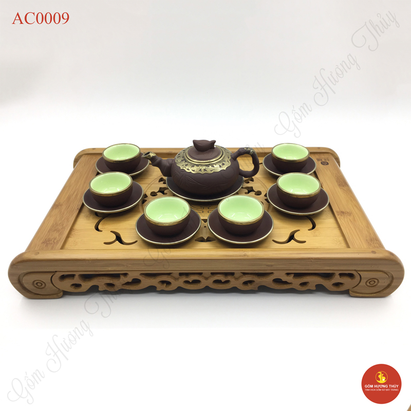 Tên sản phẩm: Bộ ấm chén Gốm dáng đào bọc đồng