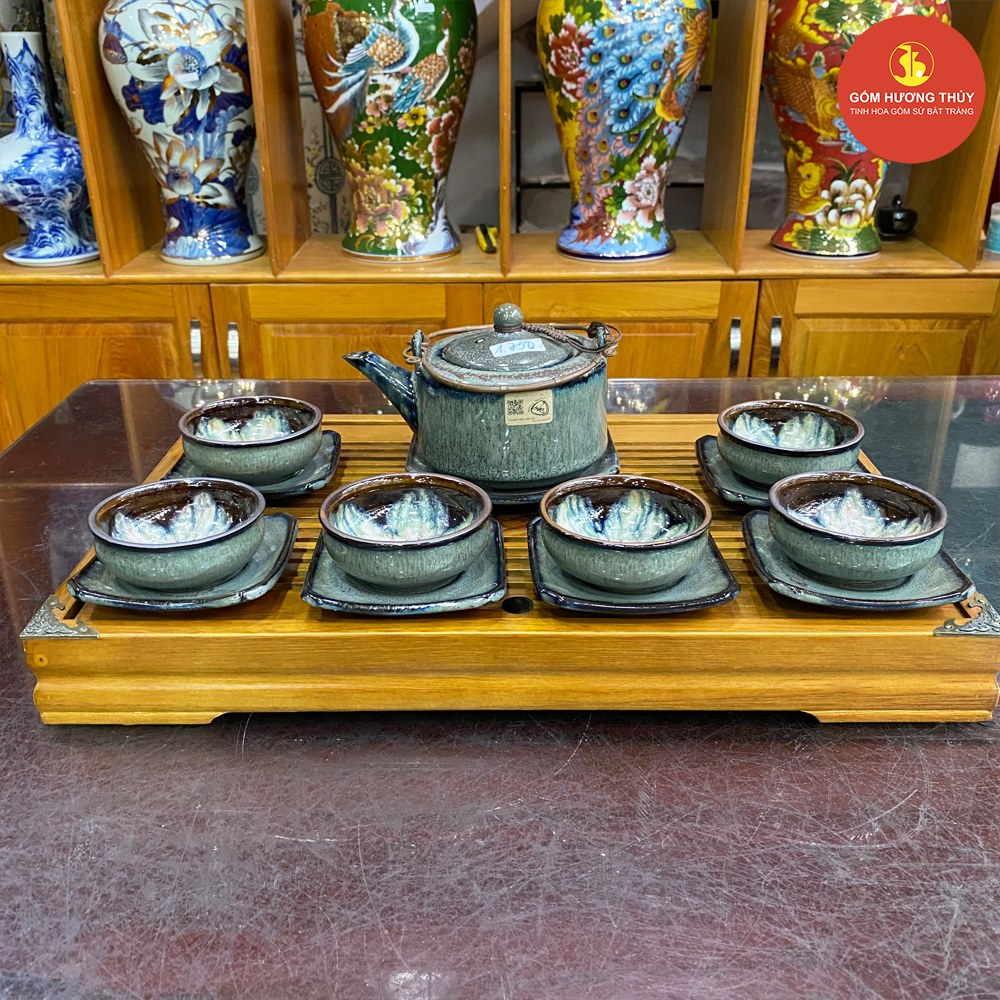 TÊN SẢN PHẨM: Bộ ấm chén hỏa biến ghi xám chén dẹt