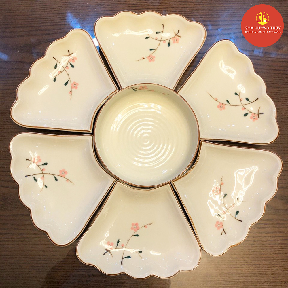 TÊN SẢN PHẨM: Bộ mặt trời men kem vẽ đào hồng