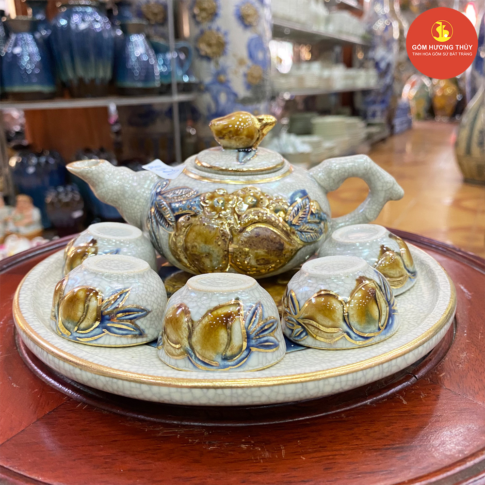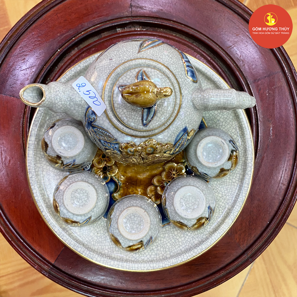 TÊN SẢN PHẨM: Bộ trà men rạn nổi Vẽ vàng kim