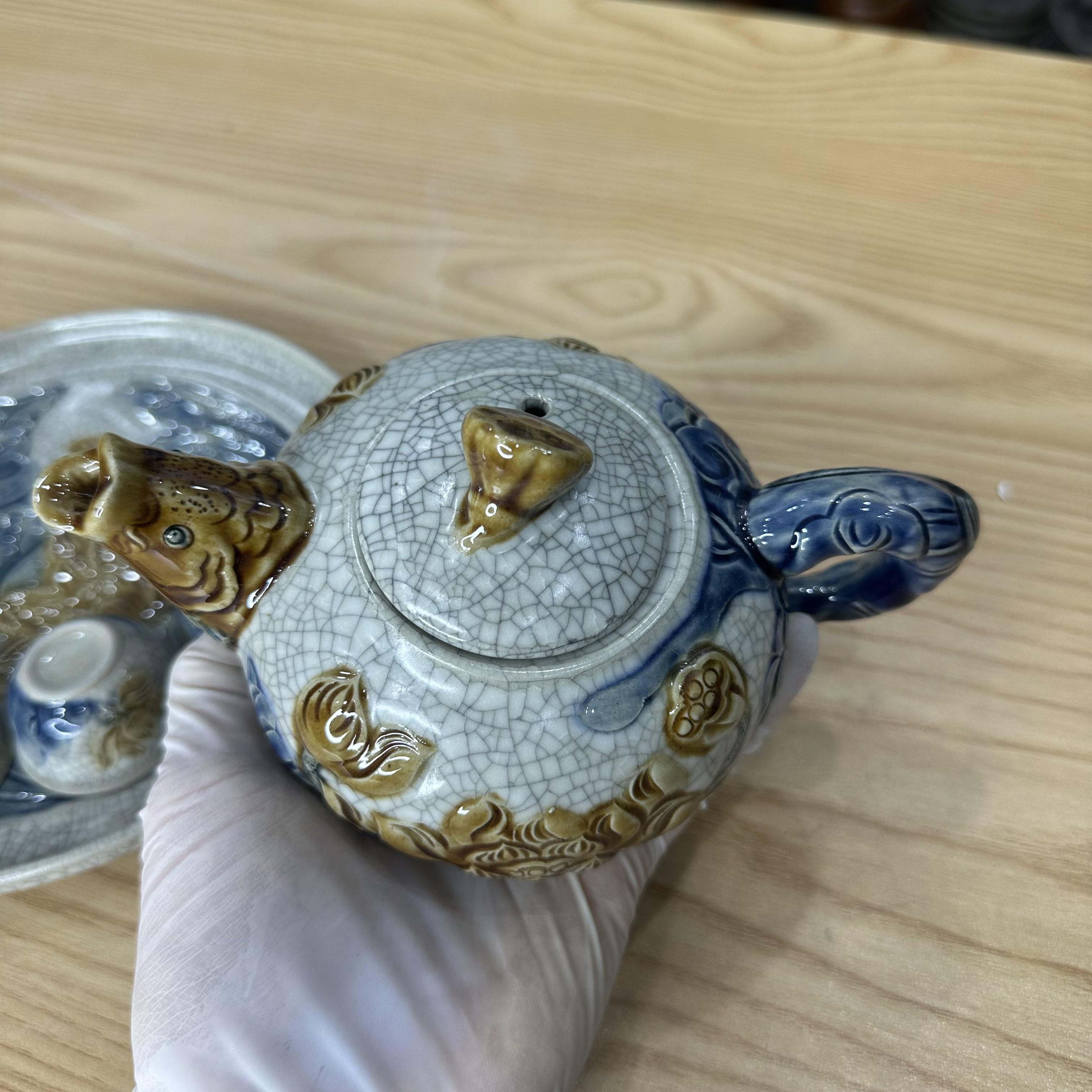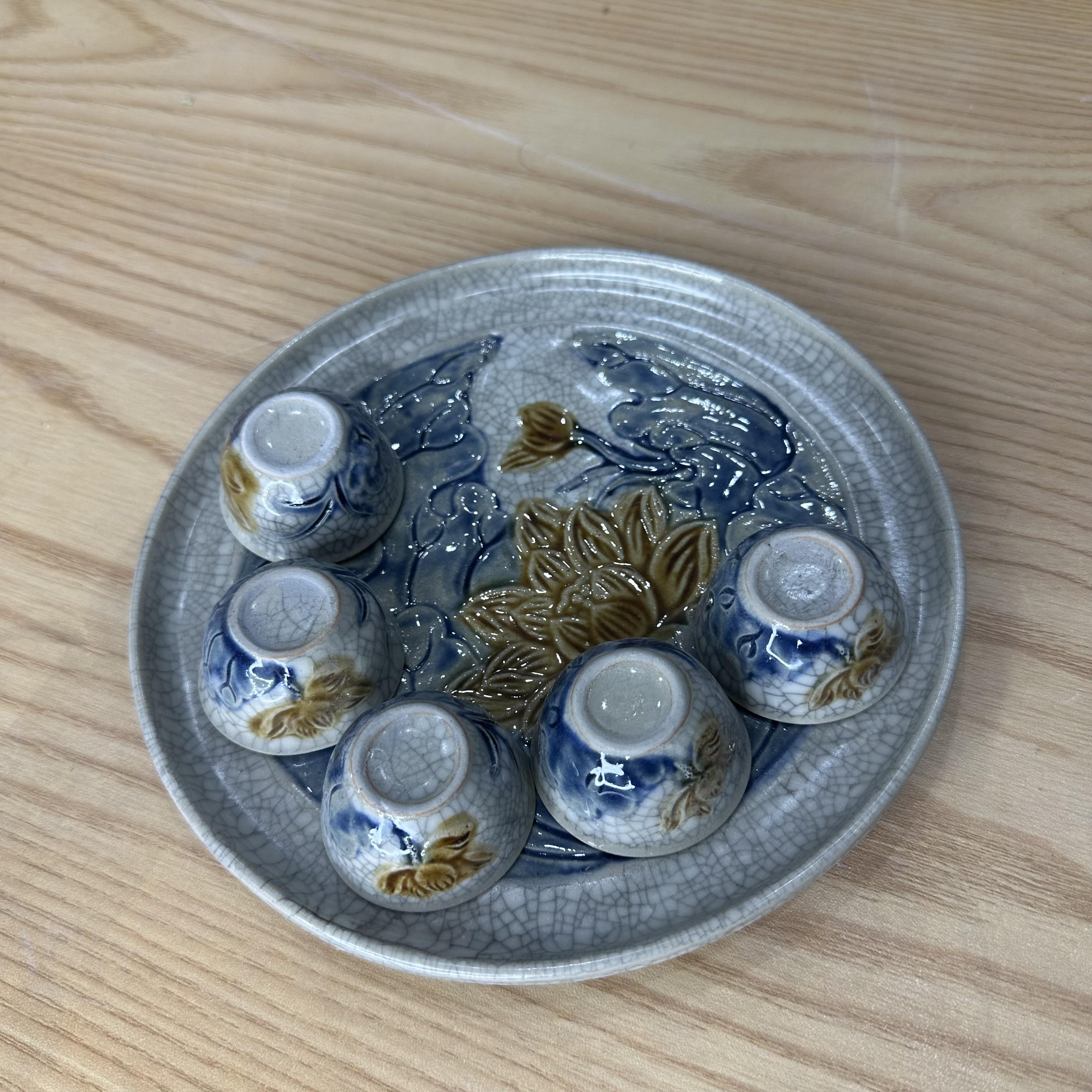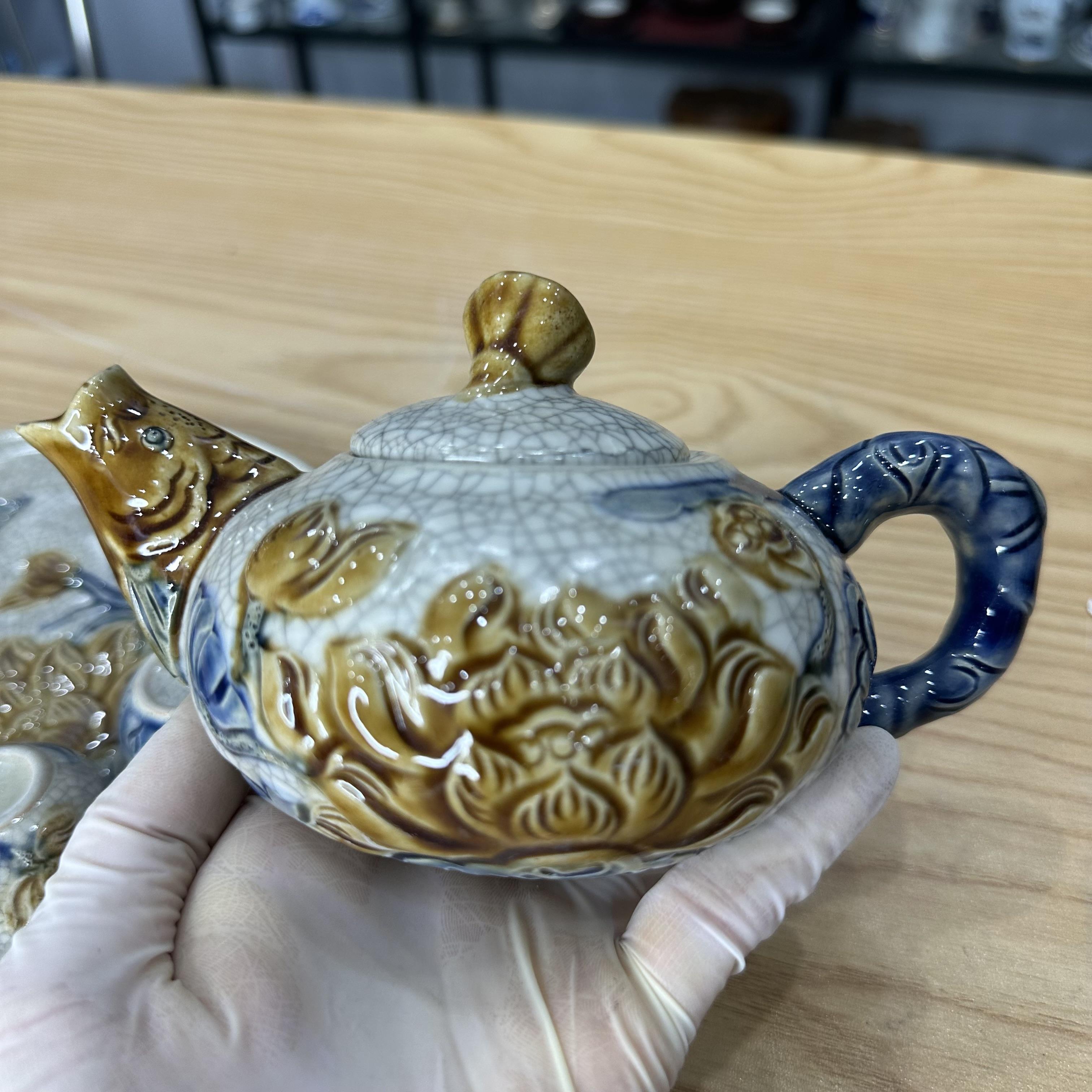 Bộ trà thờ men rạn nổi vẽ Sen [GỐM SỨ BÁT TRÀNG]