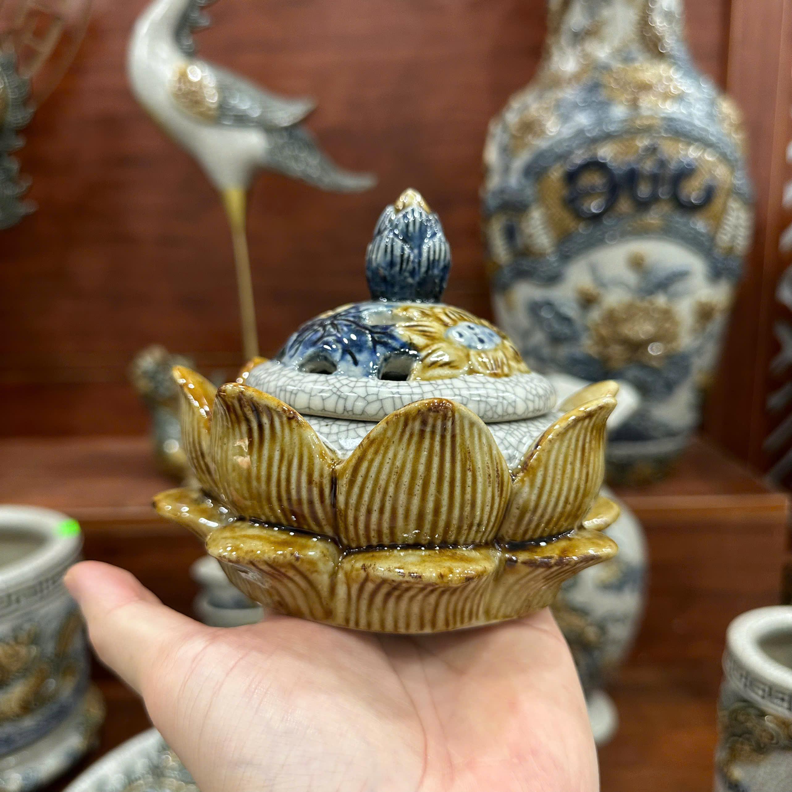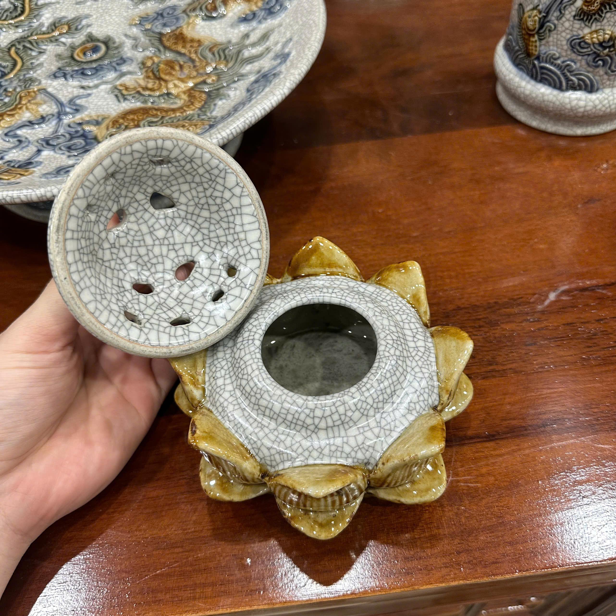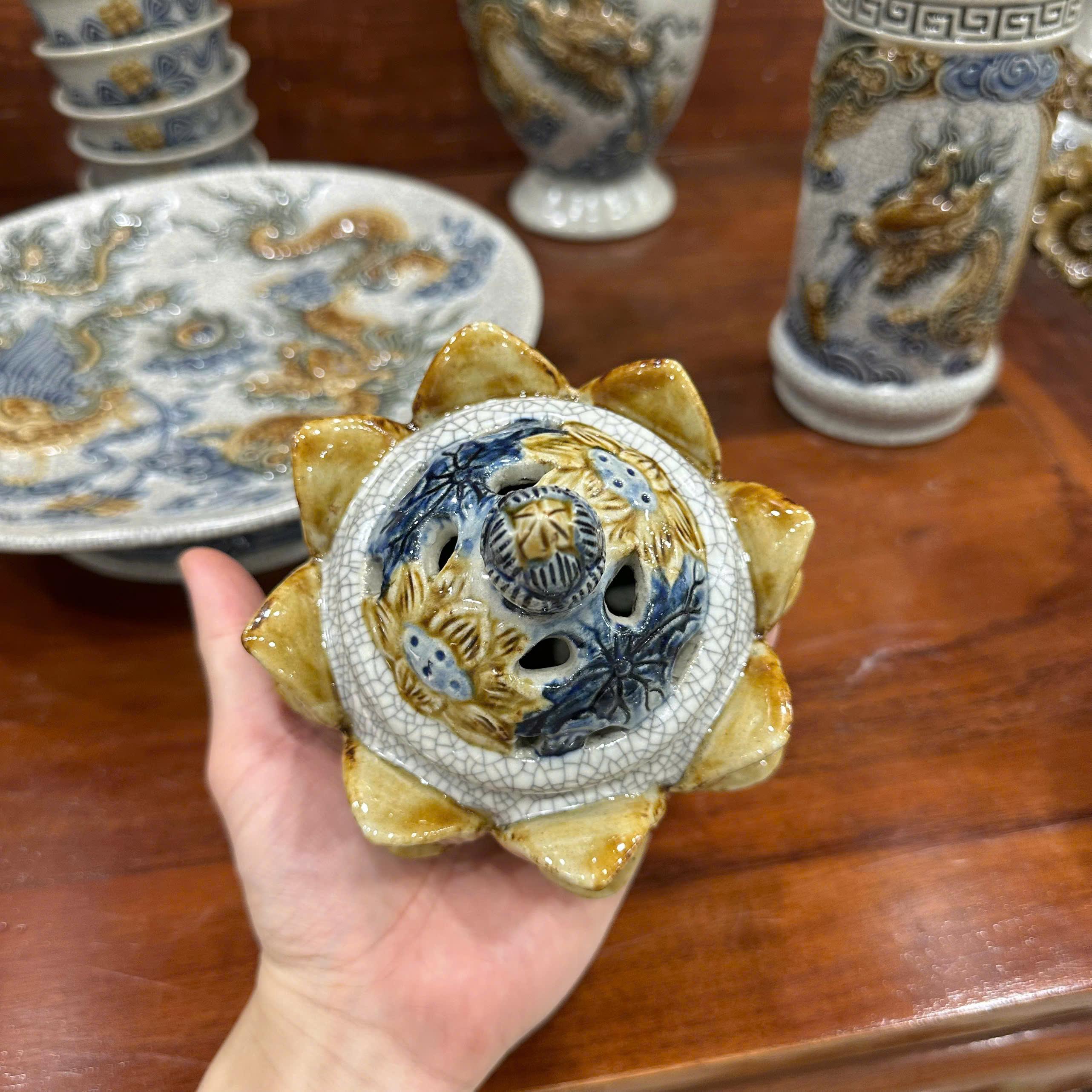 Bộ xông trầm men rạn nổi Vẽ Vàng 24K [GỐM SỨ BÁT TRÀNG]