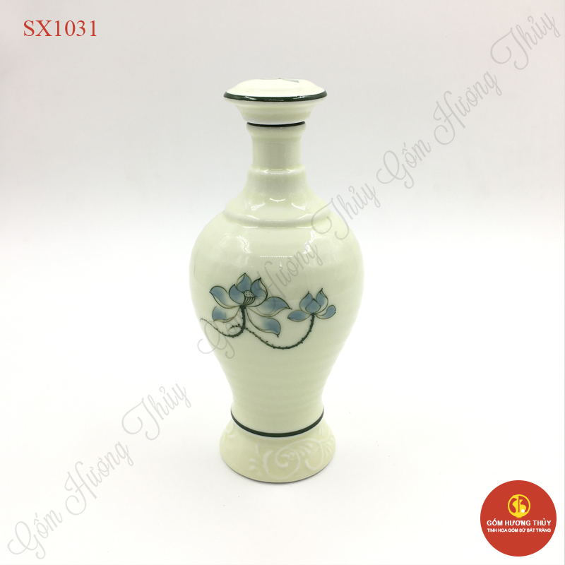TÊN SẢN PHẨM: Chai rượu men kem vẽ sen xanh
