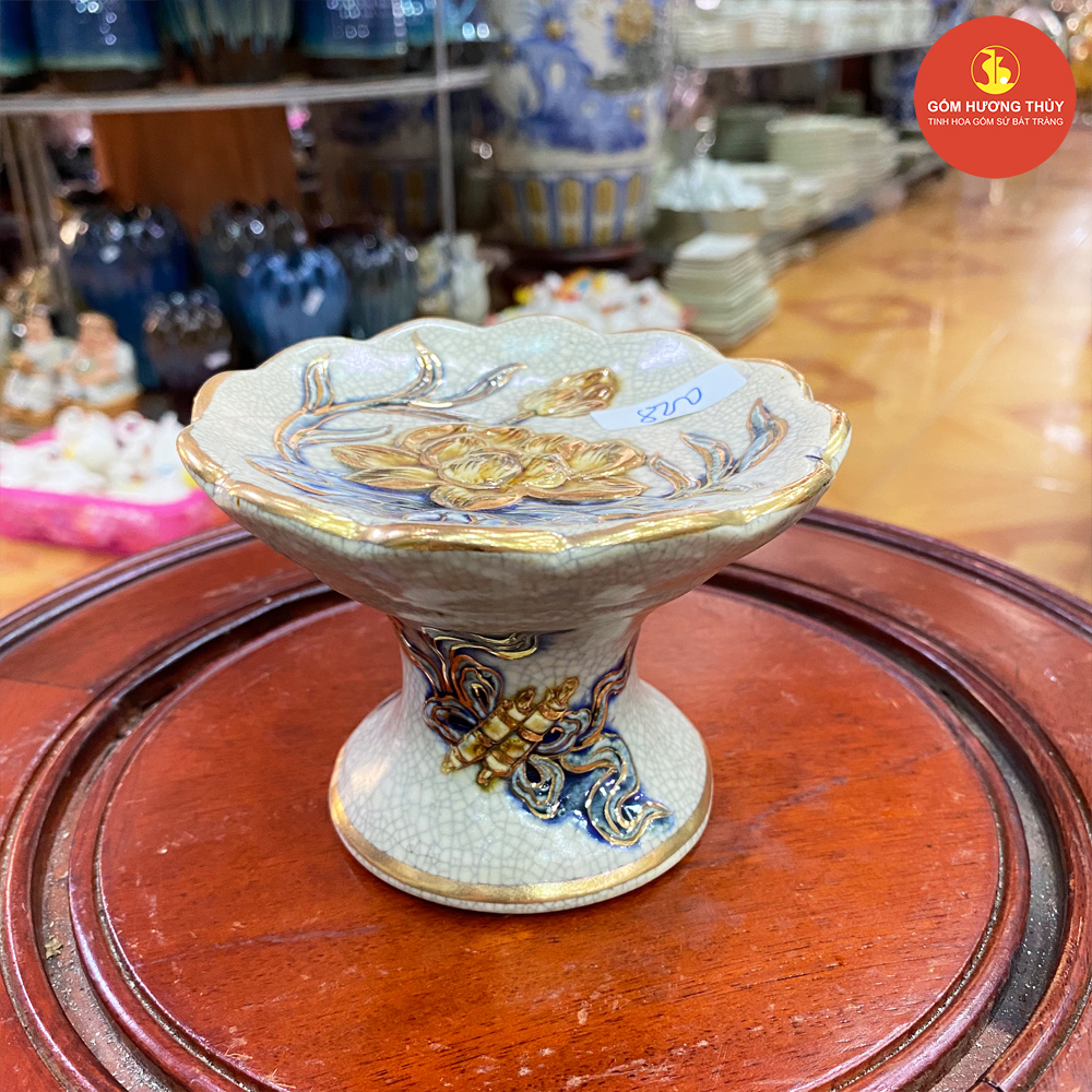 TÊN SẢN PHẨM: Chân nến men rạn đắp nổi Vẽ vàng kim