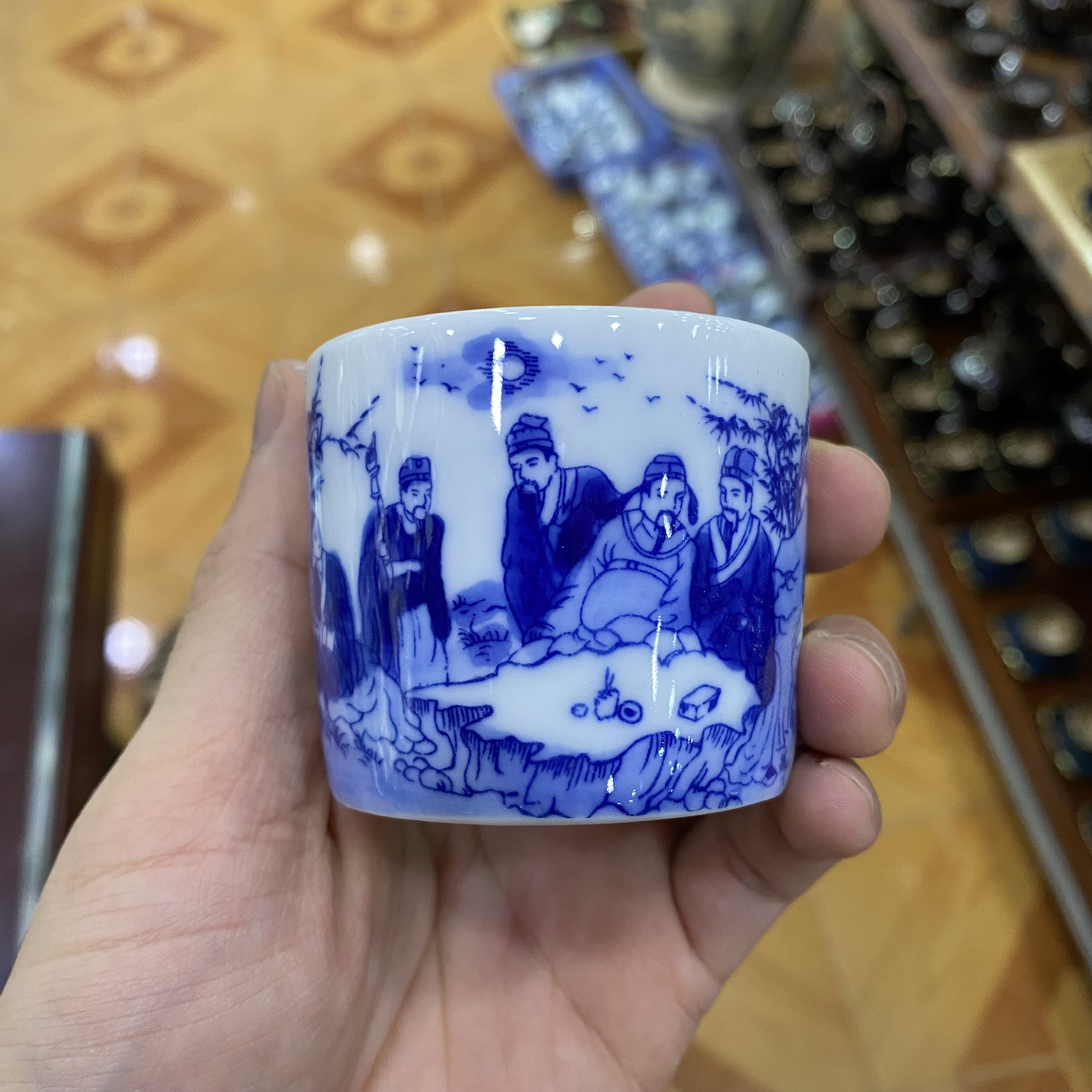 TÊN SẢN PHẨM: Chén trụ men dong cổ vẽ Trúc Lâm Thất Hiền