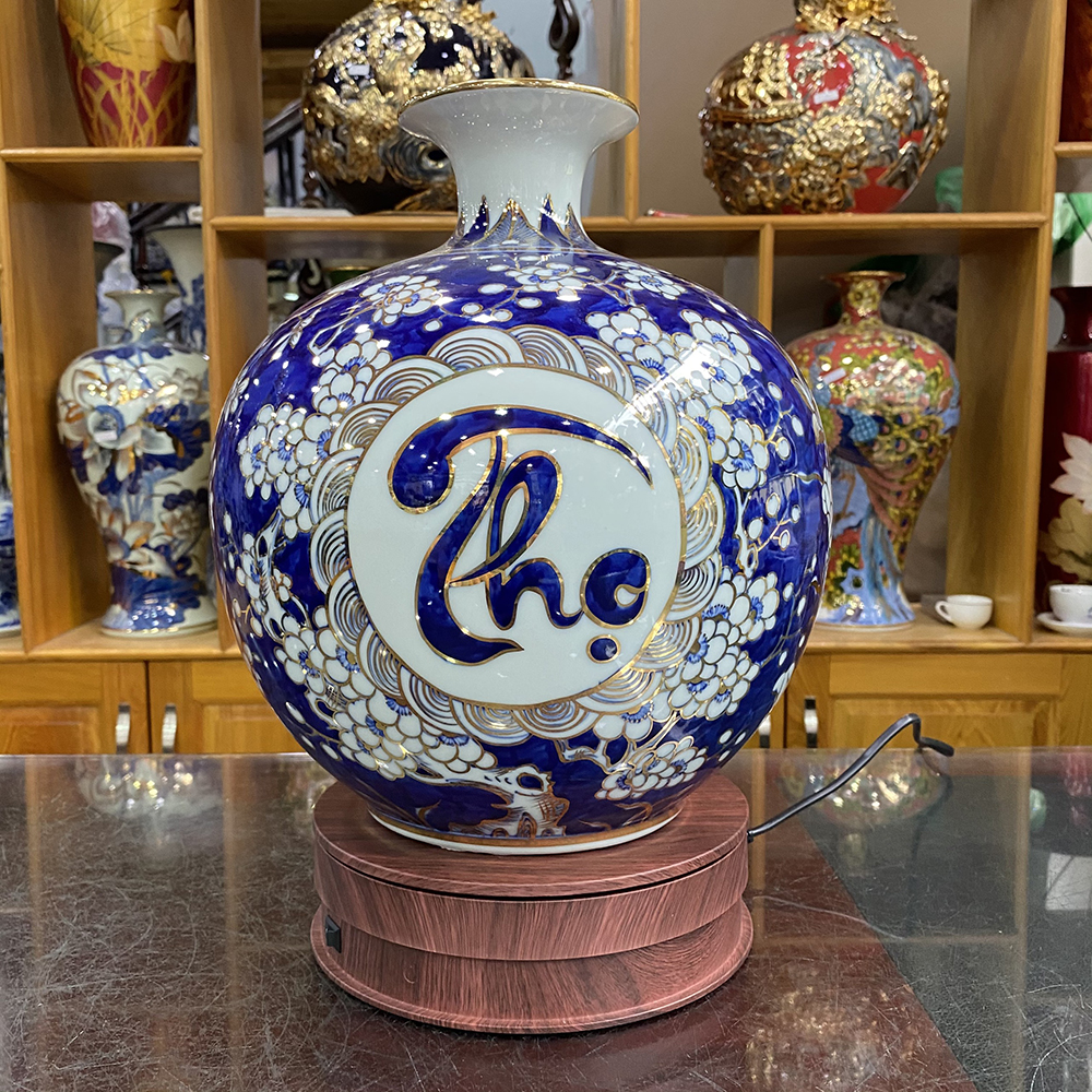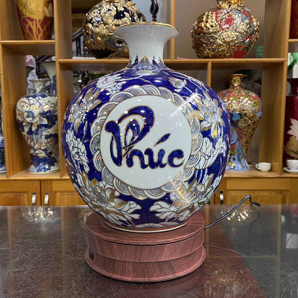 TÊN SẢN PHẨM: Bình Hút Lộc Phúc Lộc Thọ Vẽ Vàng Kim H30