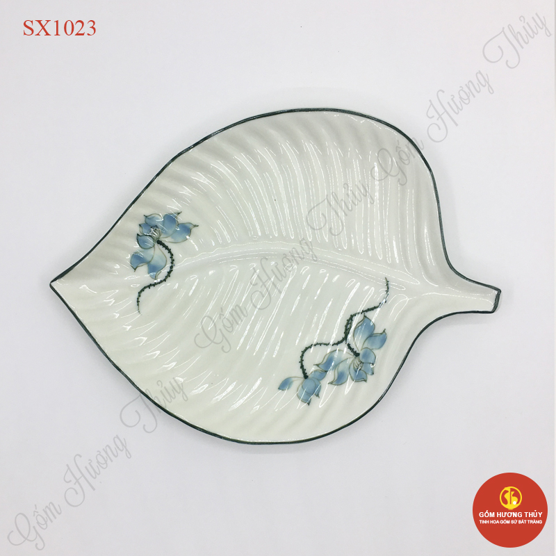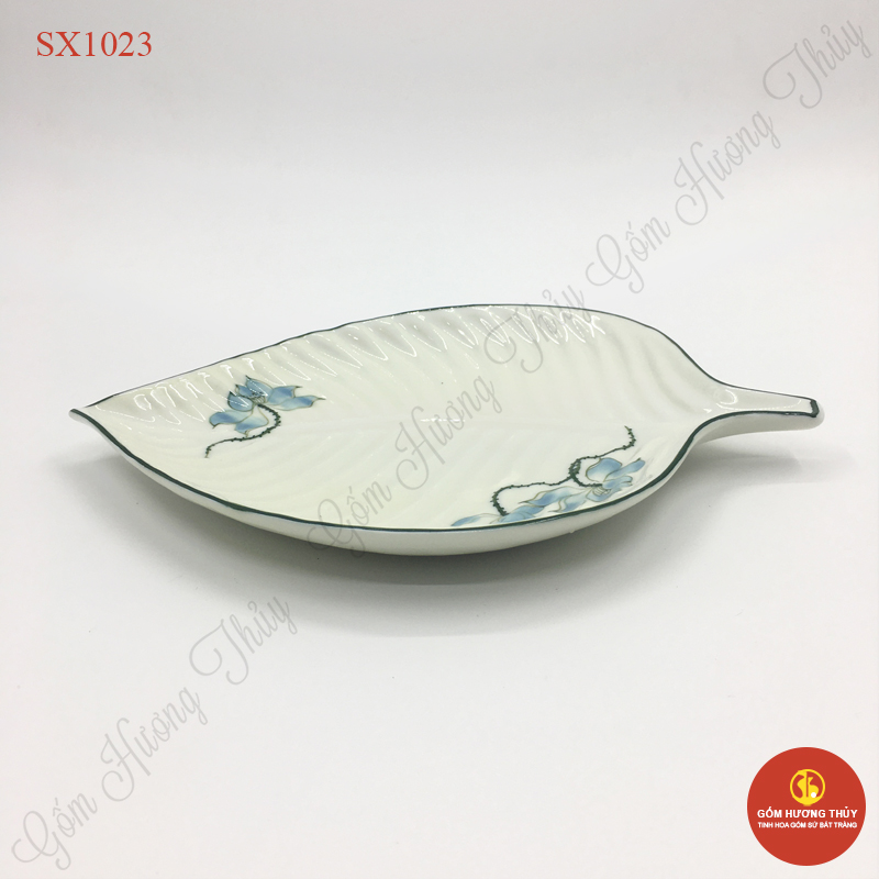 TÊN SẢN PHẨM: Đĩa lá nông men kem vẽ sen xanh